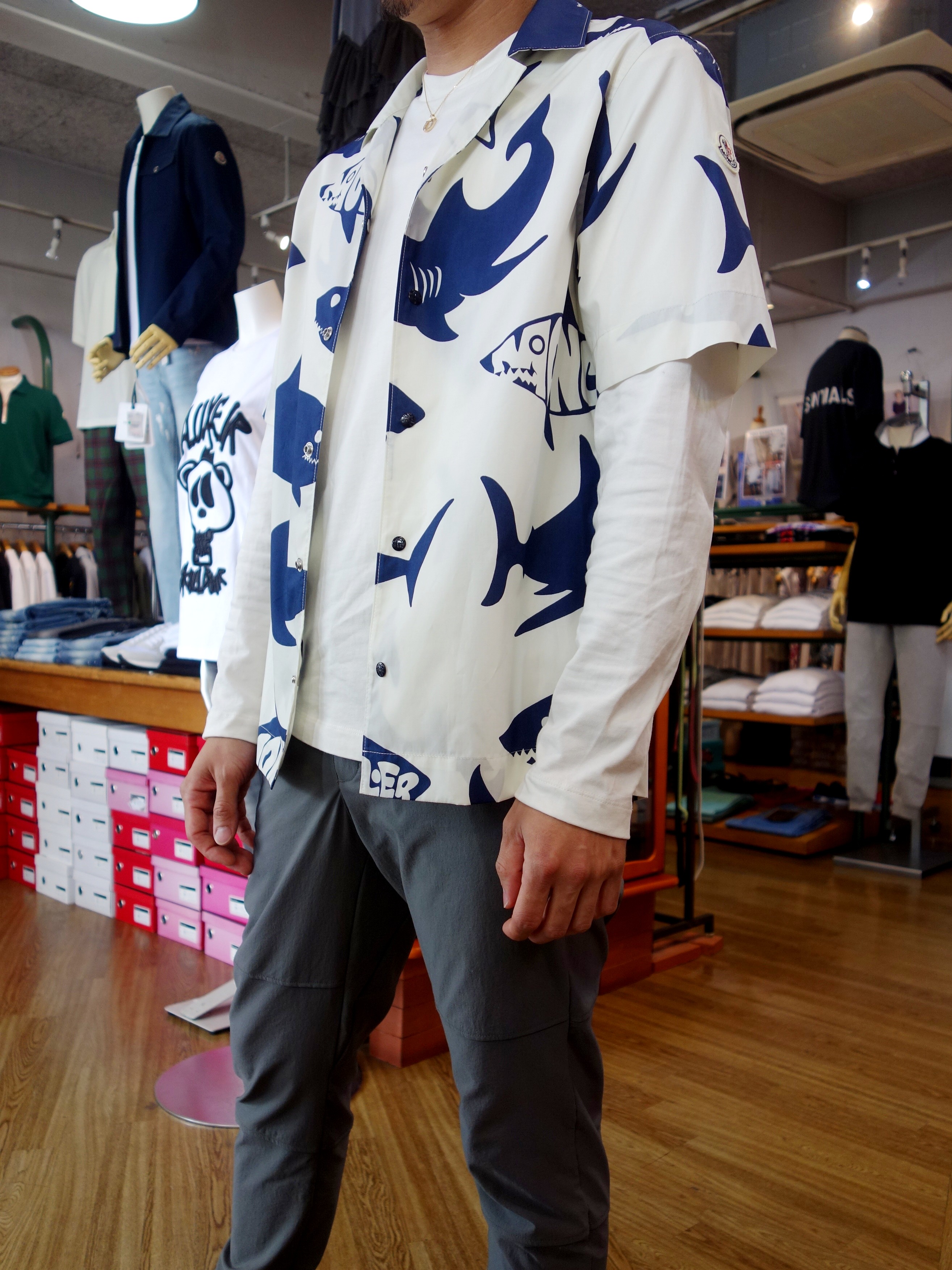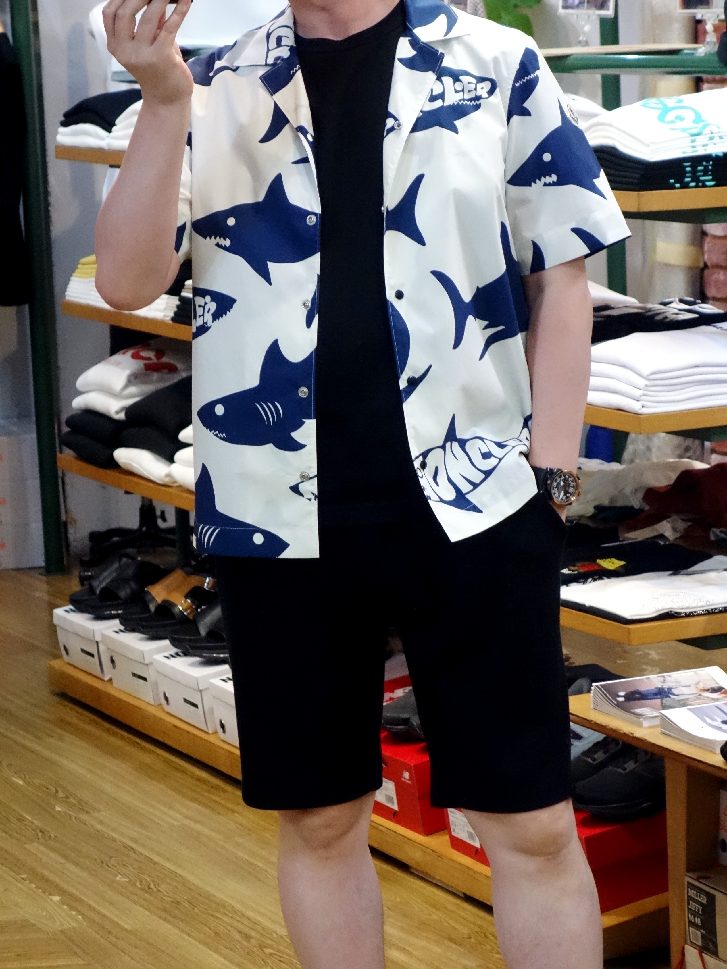 遊び心溢れる新作です!プリント柄は「ホオジロザメの群れ」! |  MONCLER(モンクレール)の新作「シャーク柄アロハシャツ」 |