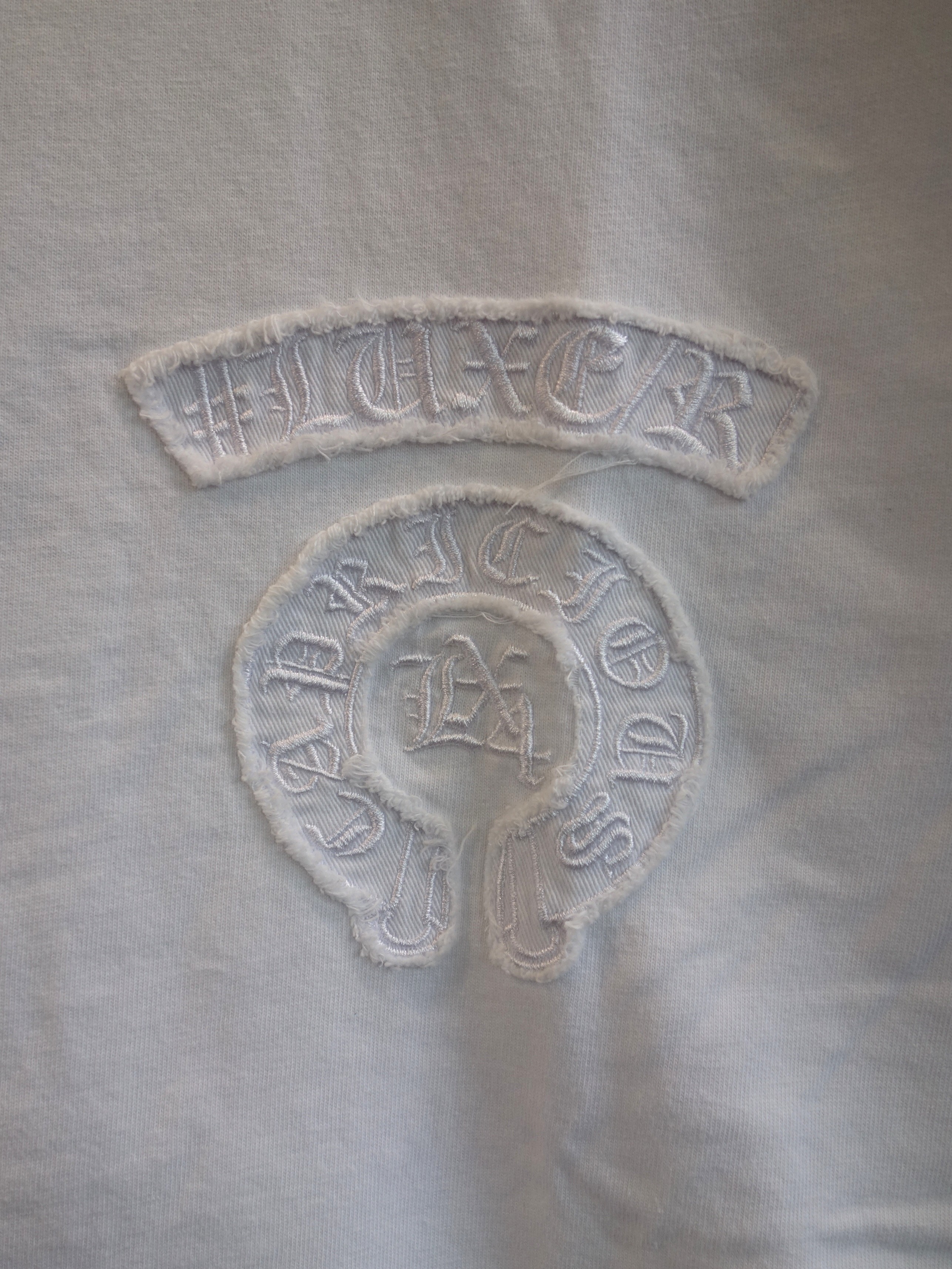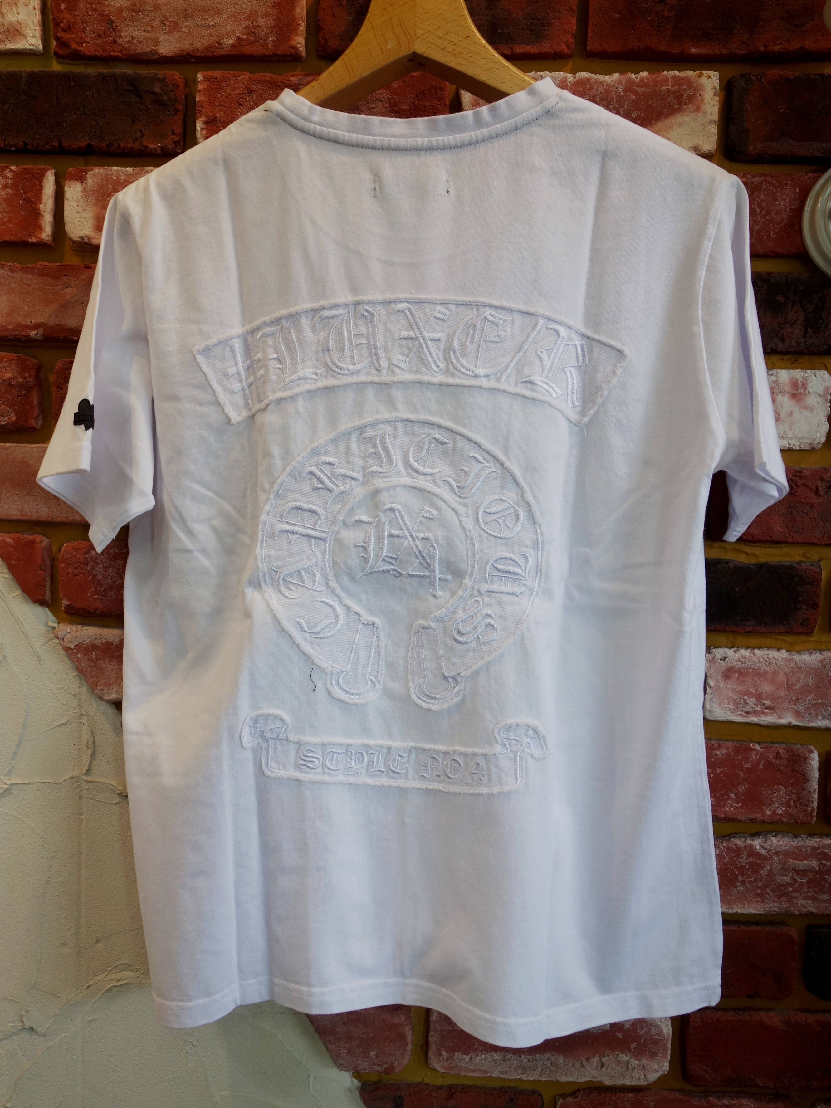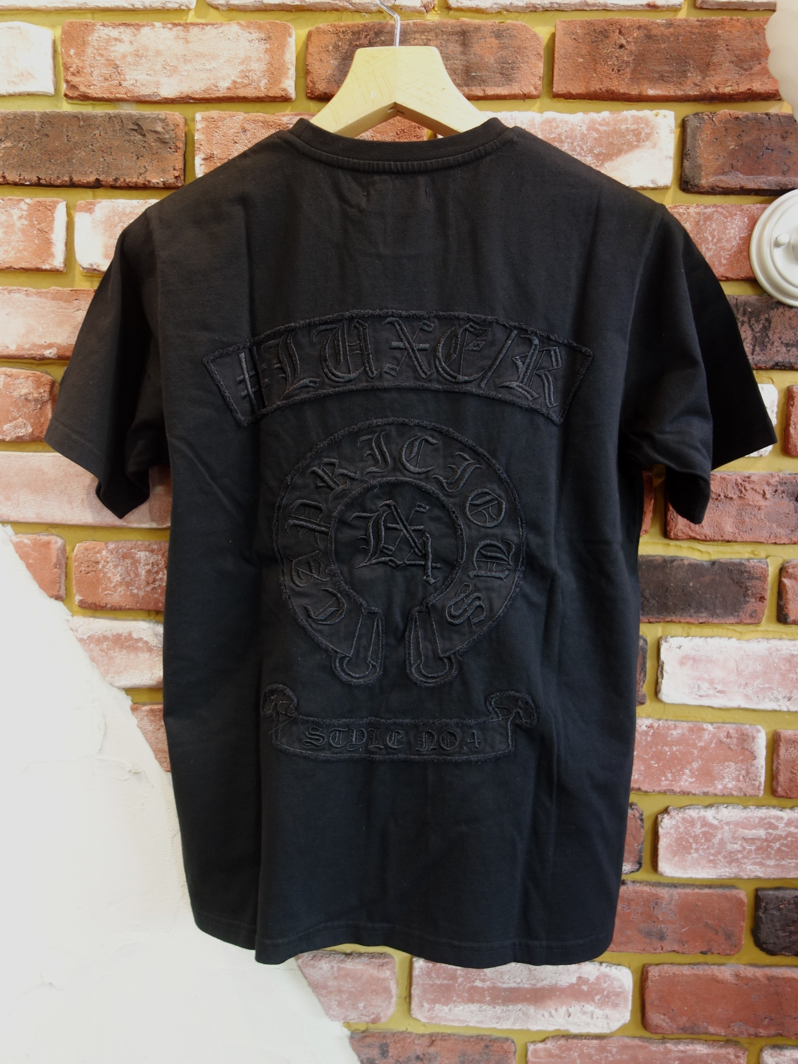 新作ですが30%OFFです!人気の花文字シリーズ |  CREW別注のアップリケ刺繍「エンブレムロゴ&クロスS/S Tee」 |