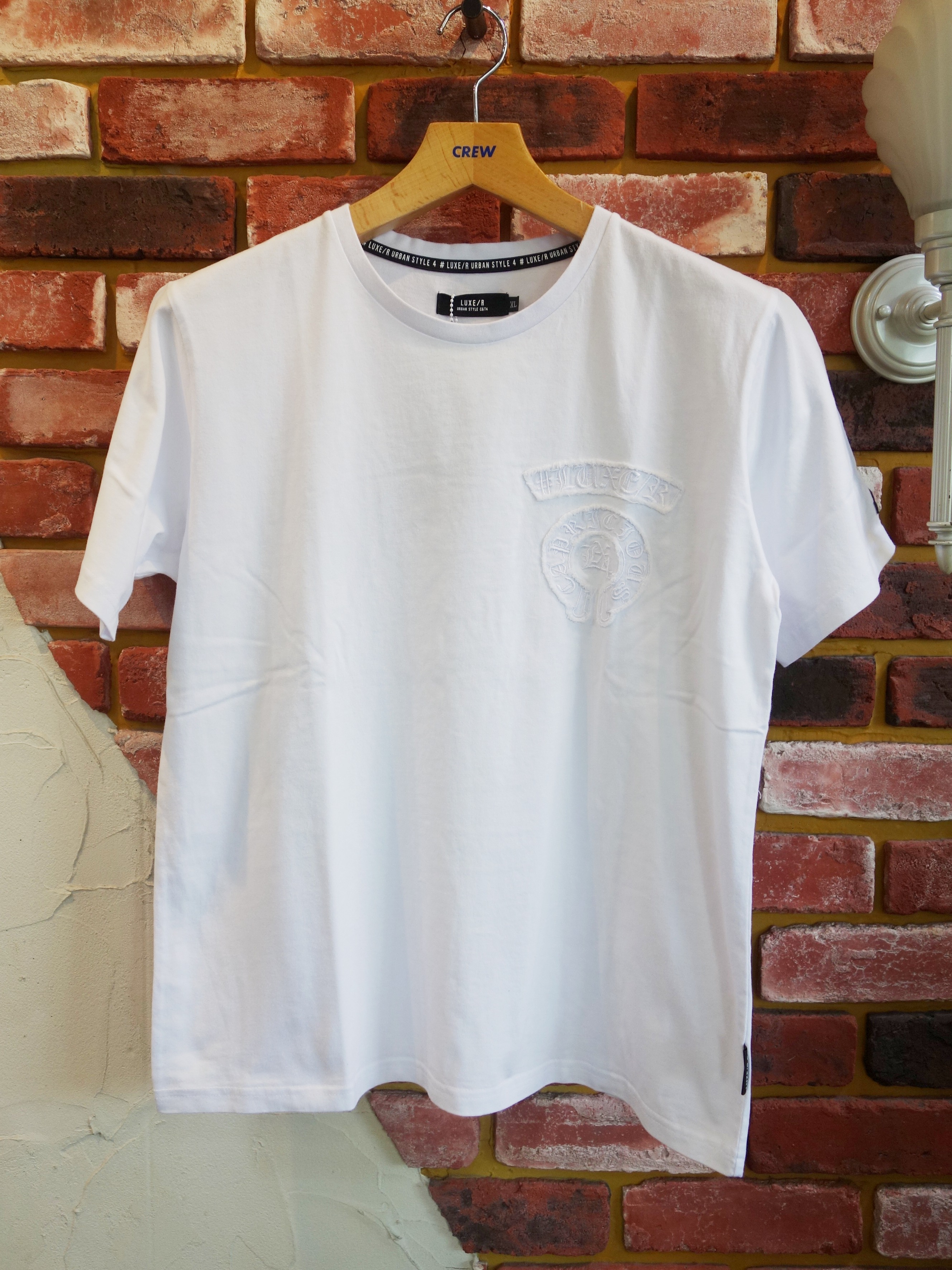 CREW別注のアップリケ刺繍「エンブレムロゴ&クロスS/S Tee」
