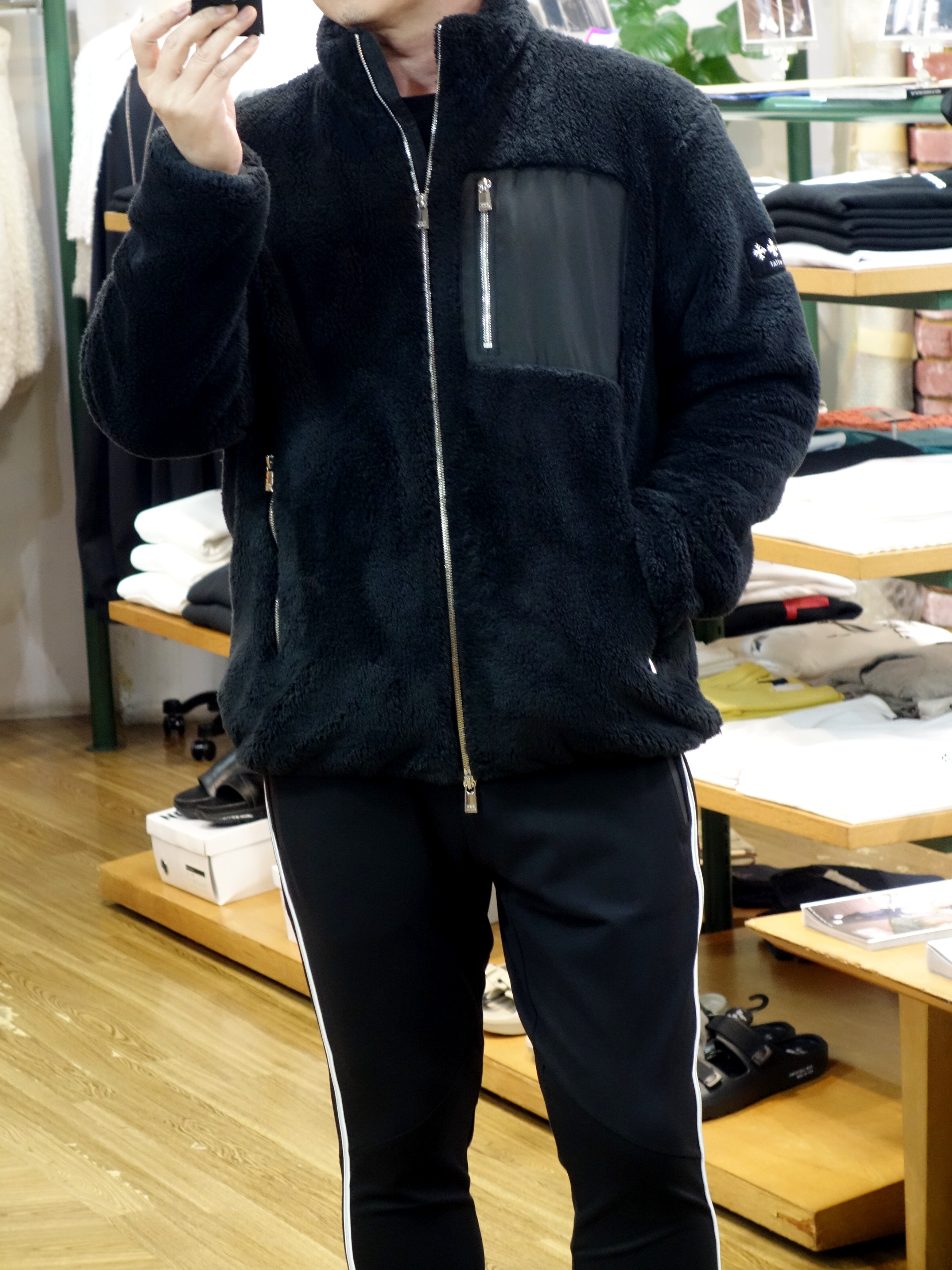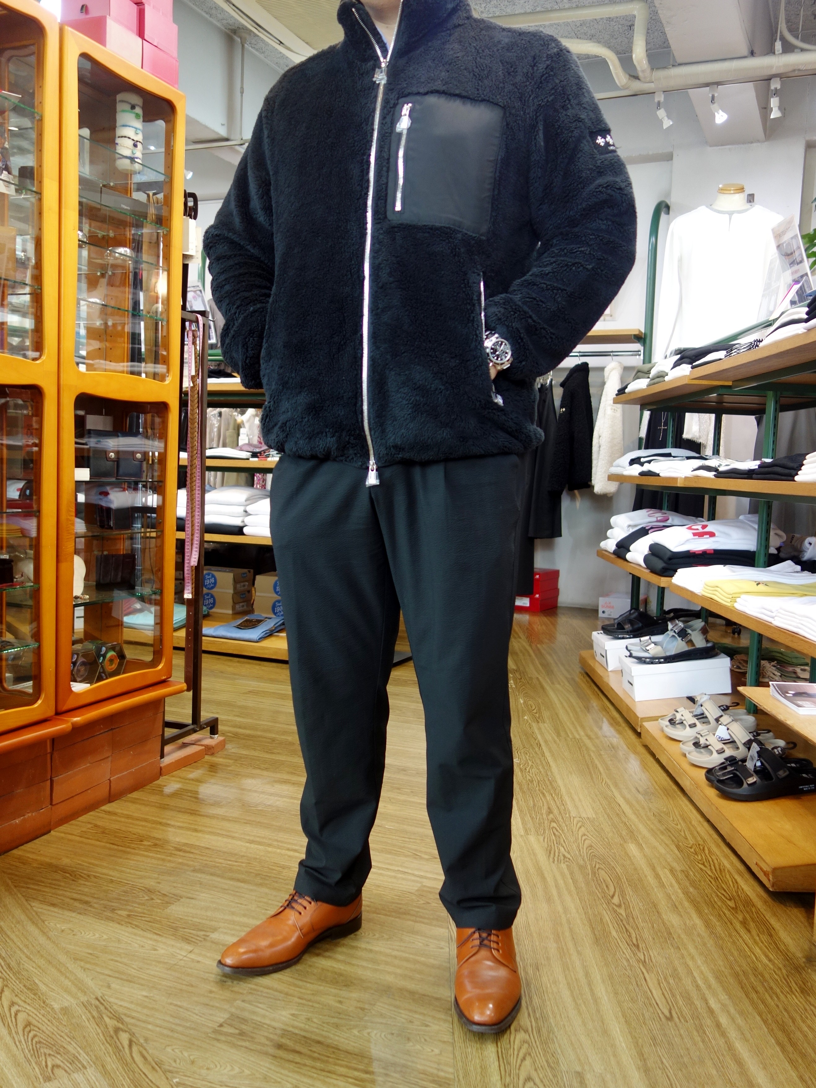 エアリーなストレッチフリースボア素材でスウェット感覚でお使い頂けます |  ご試着&早速ご購入頂きましたお客様。 |