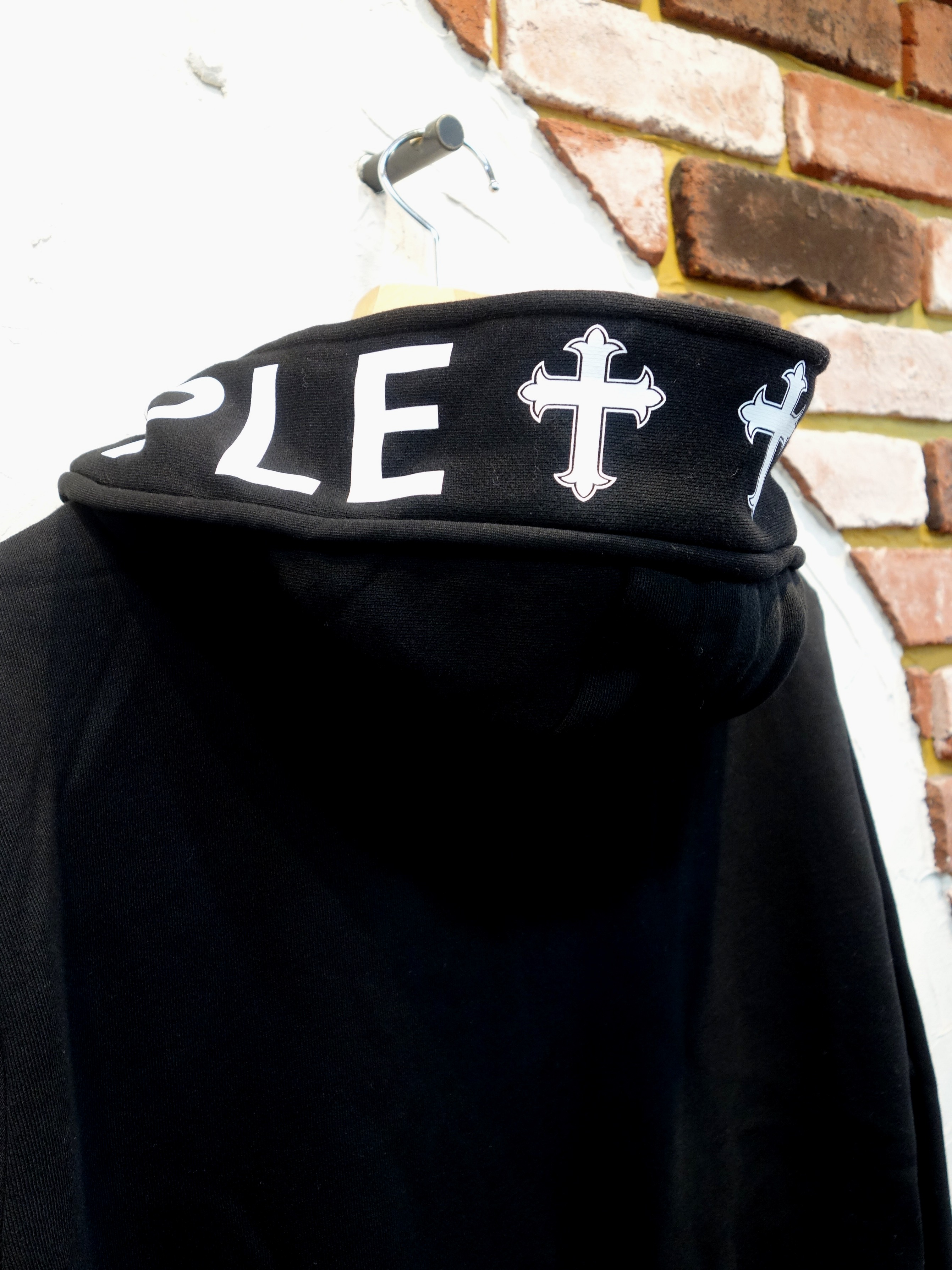 フード周りにホワイトレタリングのロゴプリント。