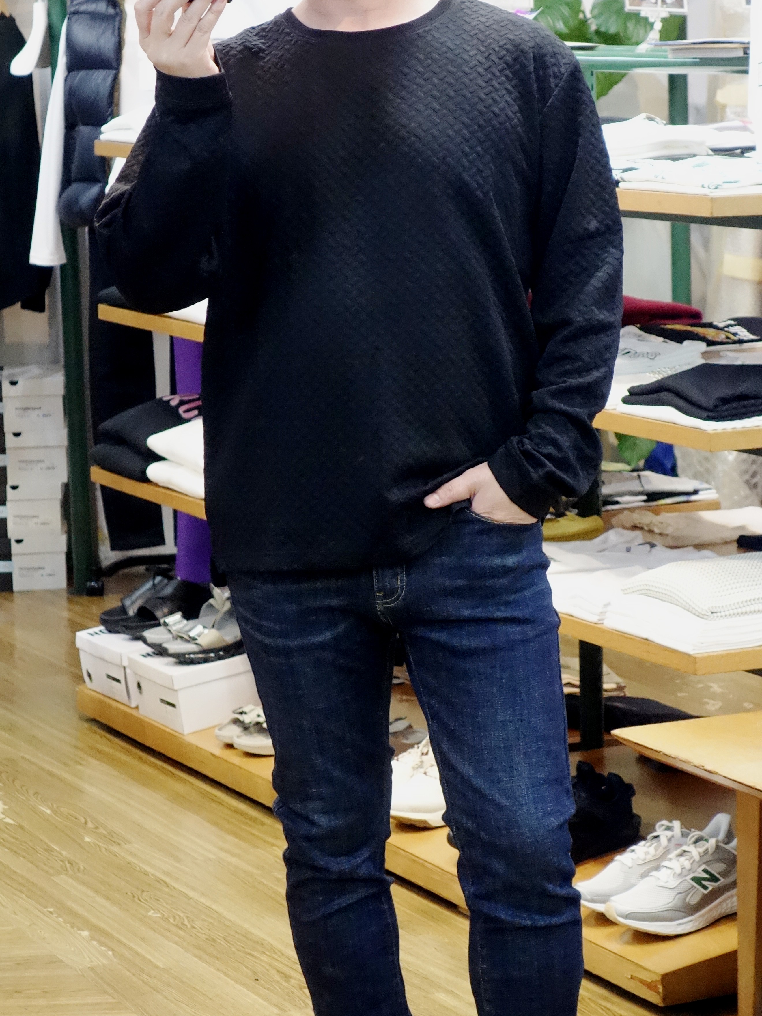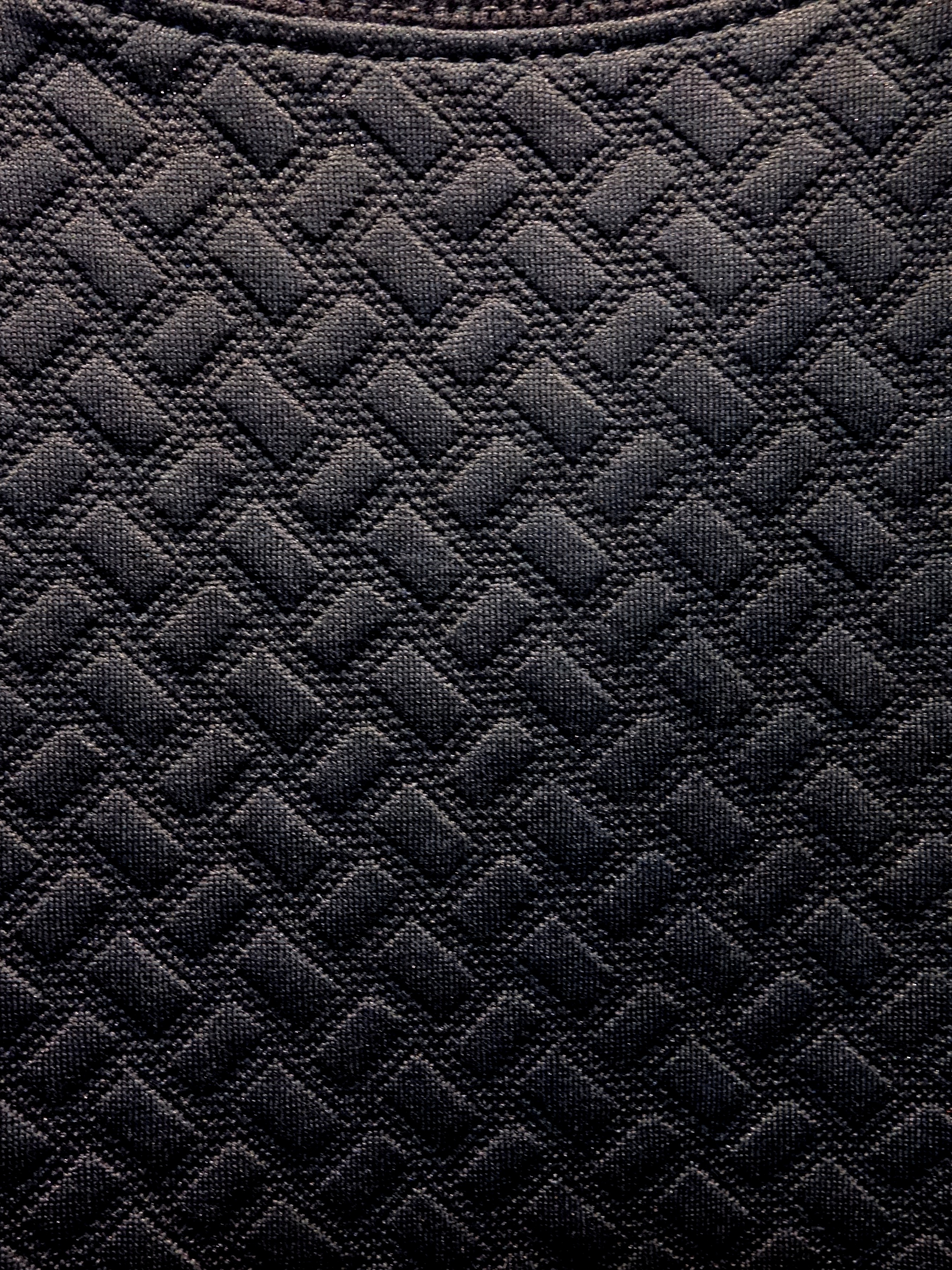 旬のオーバーサイジング。 ポリエステル95%、ポリウレタン5%のコンフォートなストレッチ素材です |  表面には細かな長方形を立体に編み込んだ酒脱柄! |
