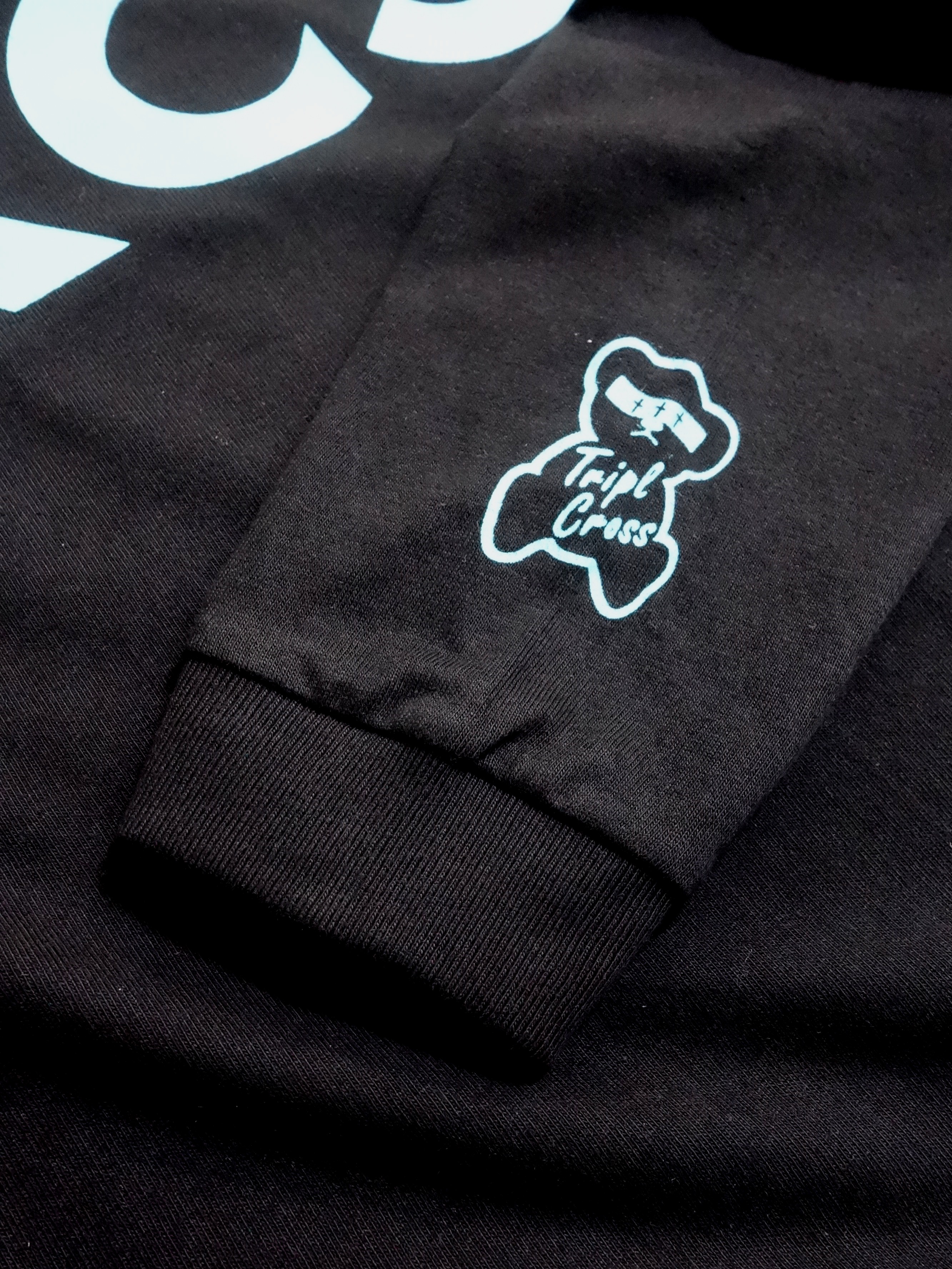 フロント部分には旬のカラーで「TRCS」のプリント |  左袖口にトリプルクロスベアのプリント |