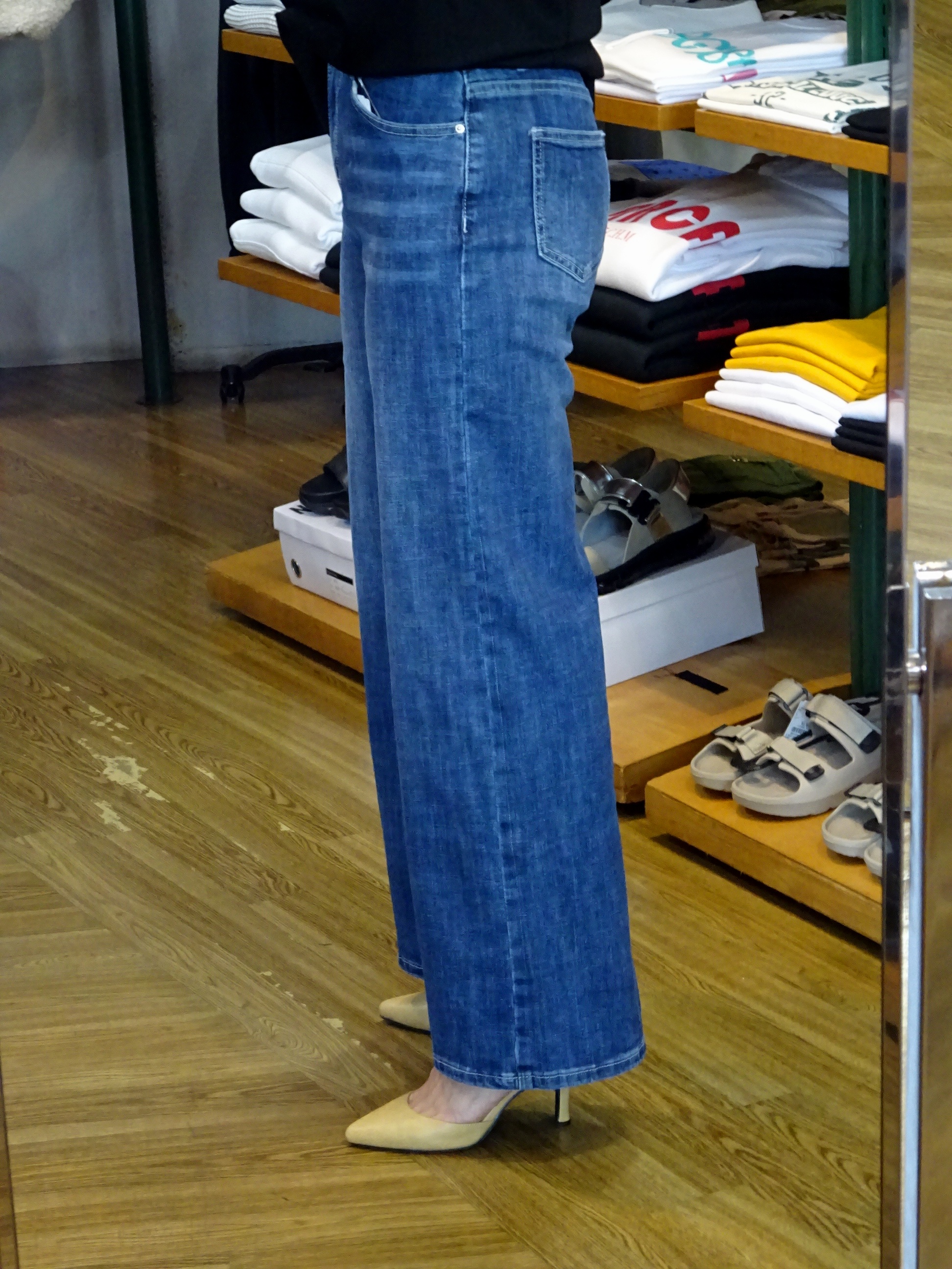 腰位置を高くみせてくれる股上深めで脚のラインも隠せるスタイルアップ効果のあるデニムです♡