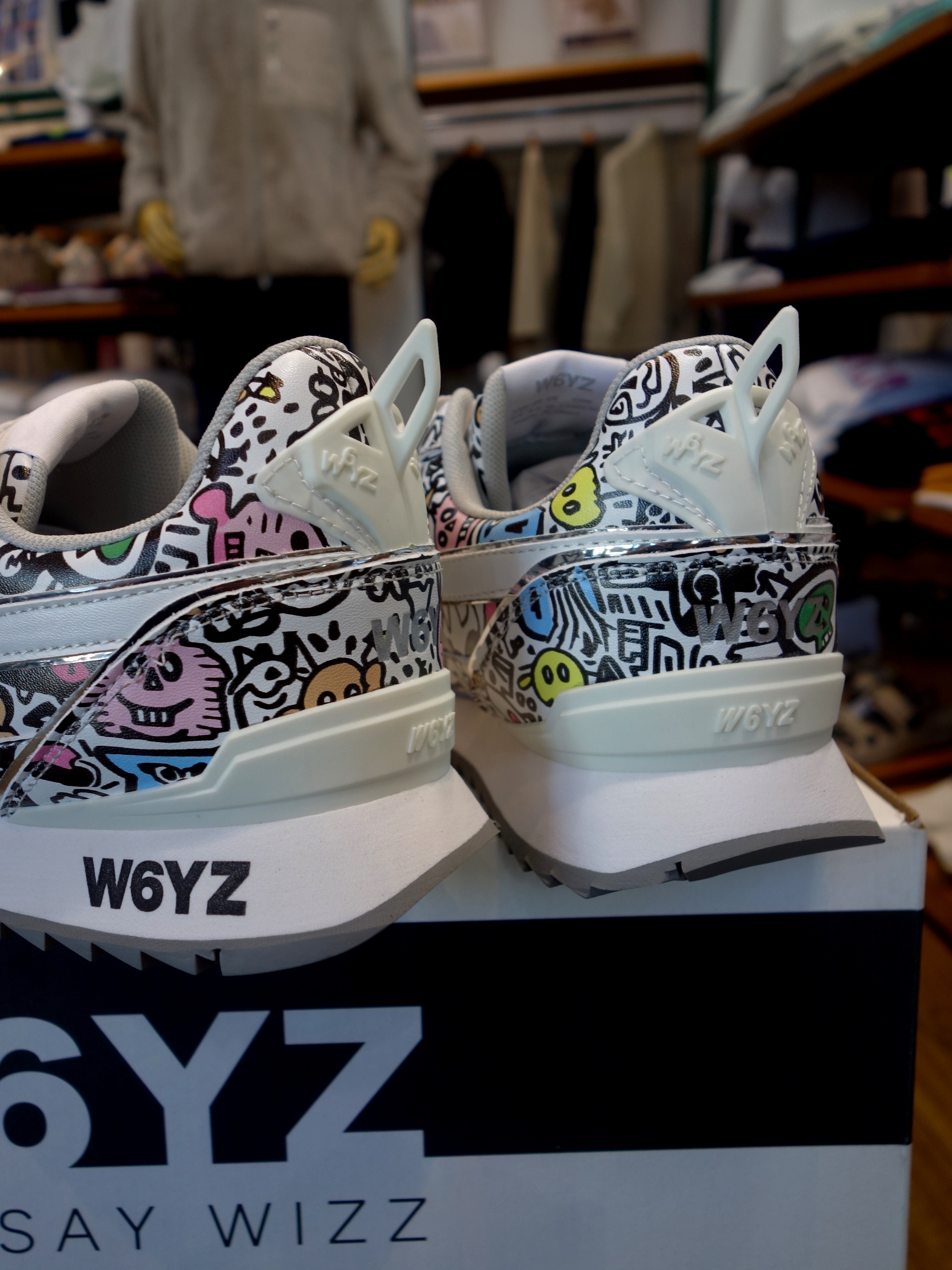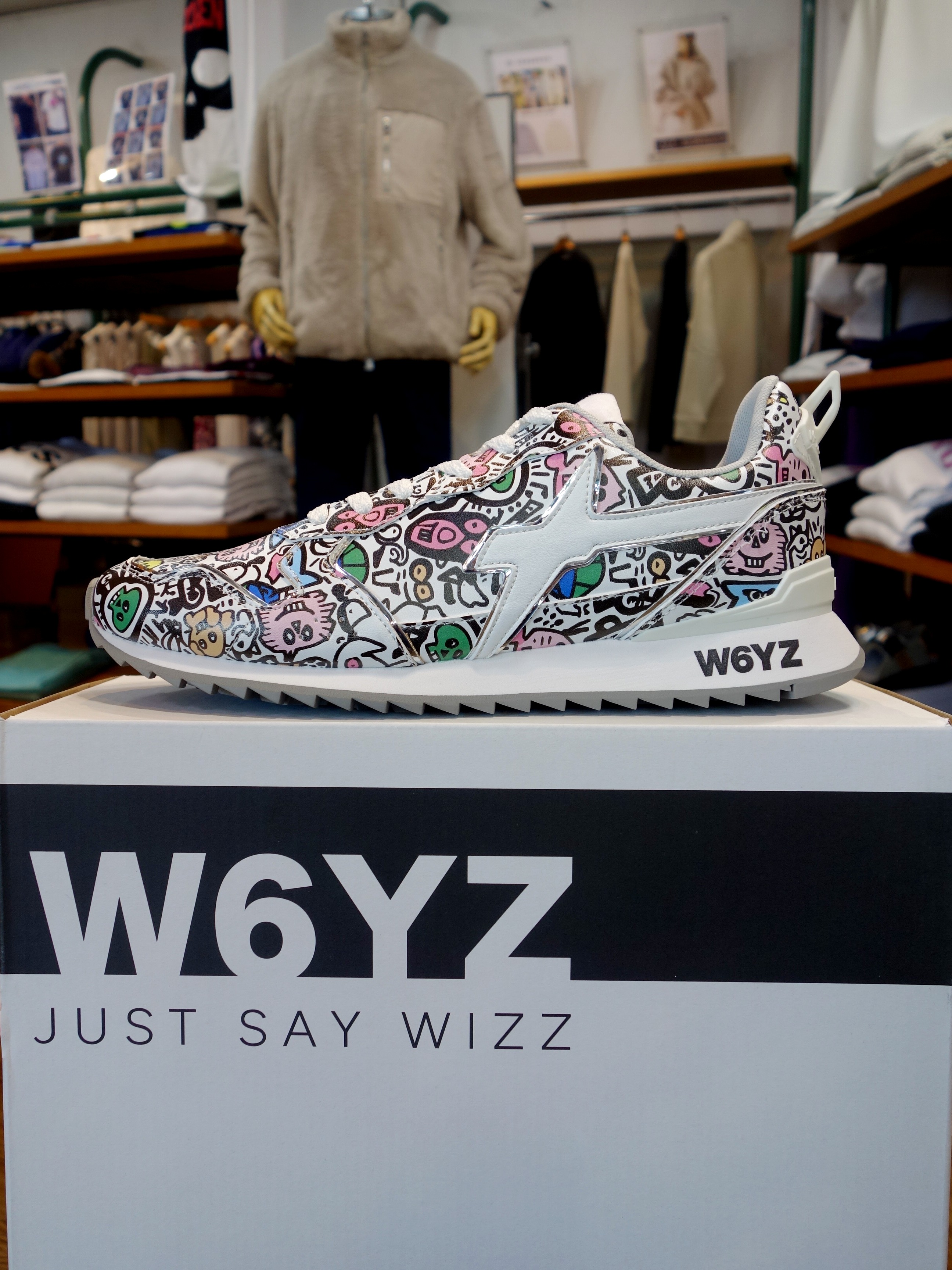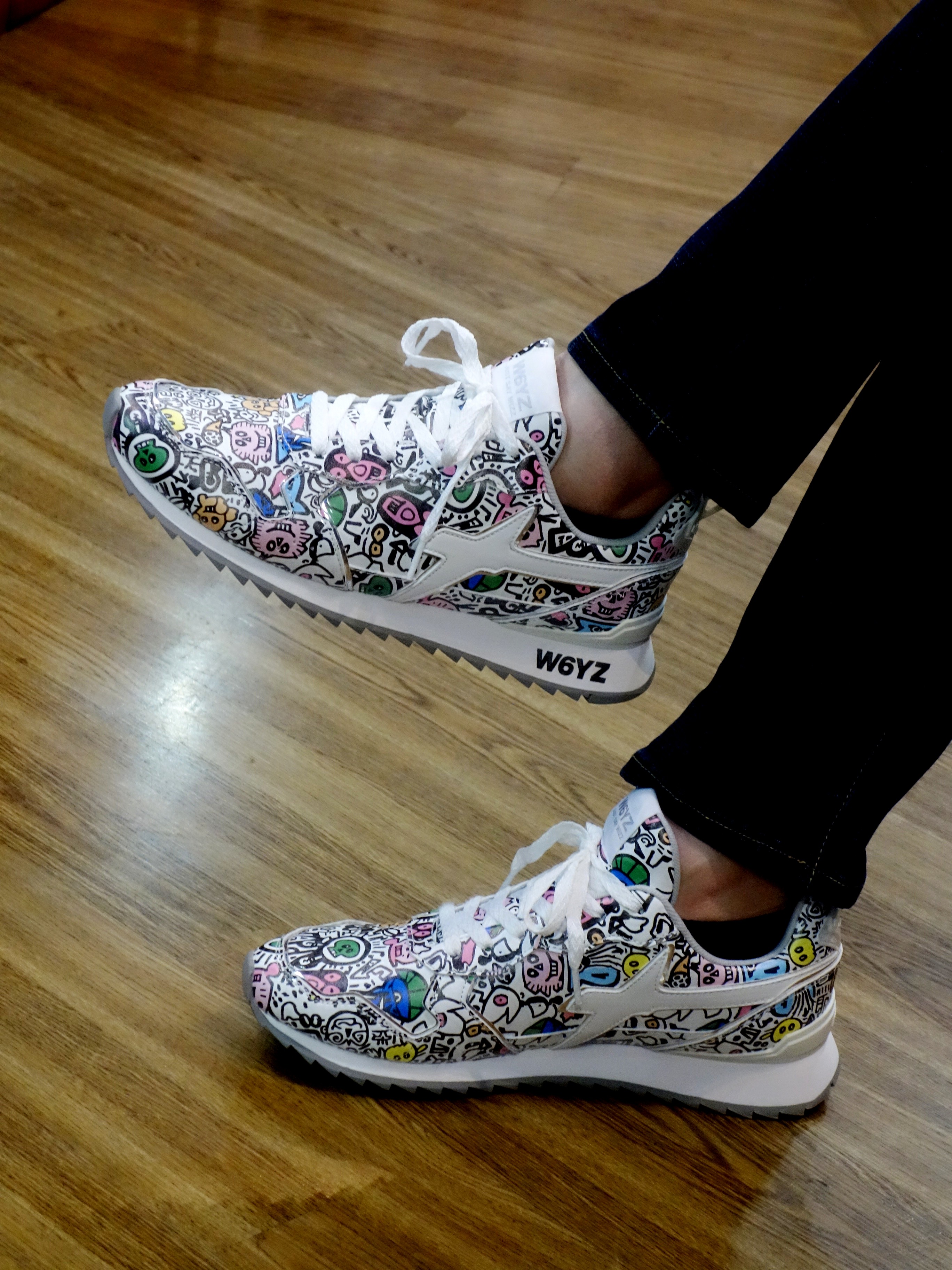 AIが生成した「GRAPHIC W6YZ」 気分アガるグラフィックイラストを纏った一足です |  サイドには「SPARK(一瞬の閃き)」モチーフ |