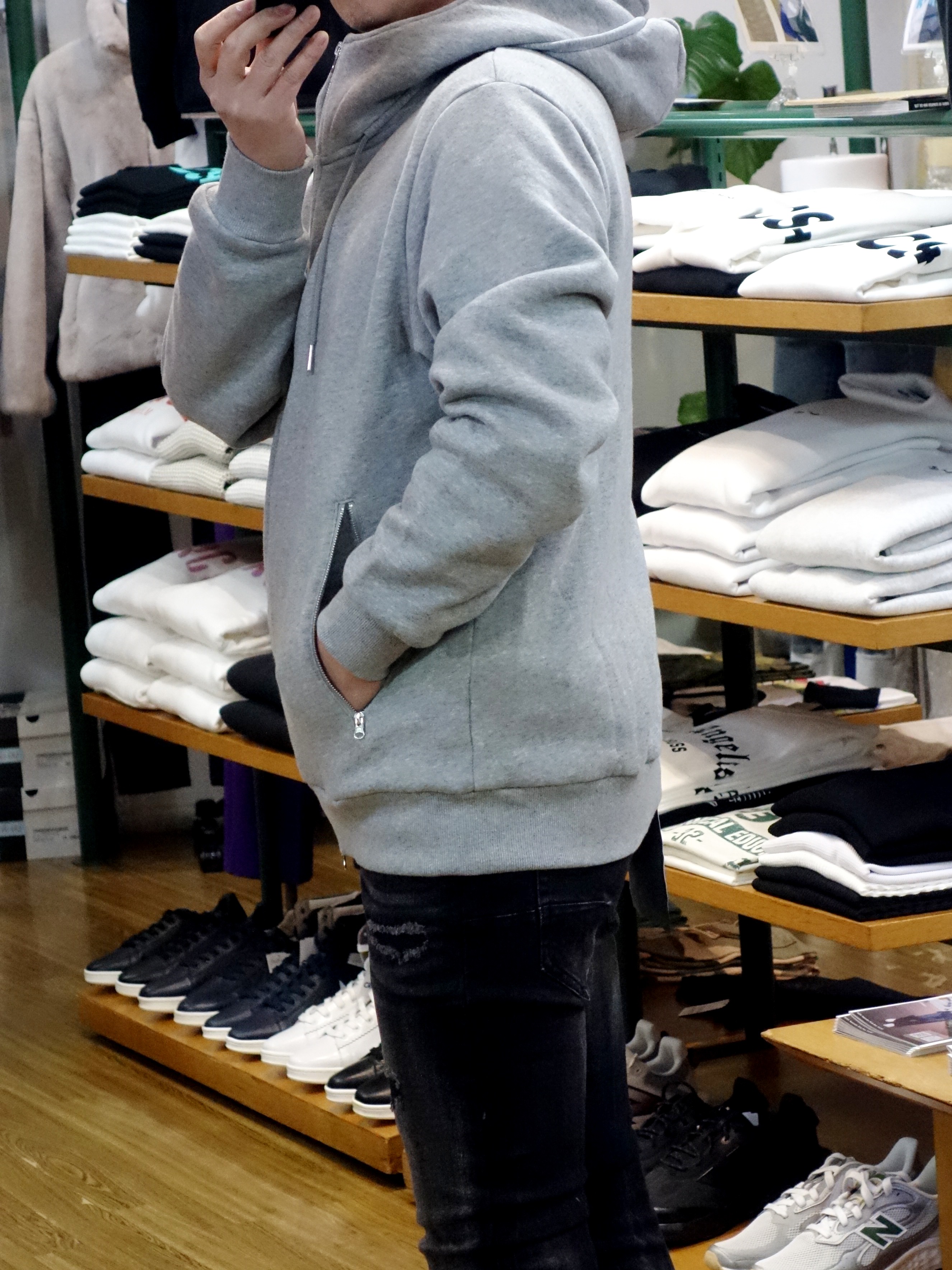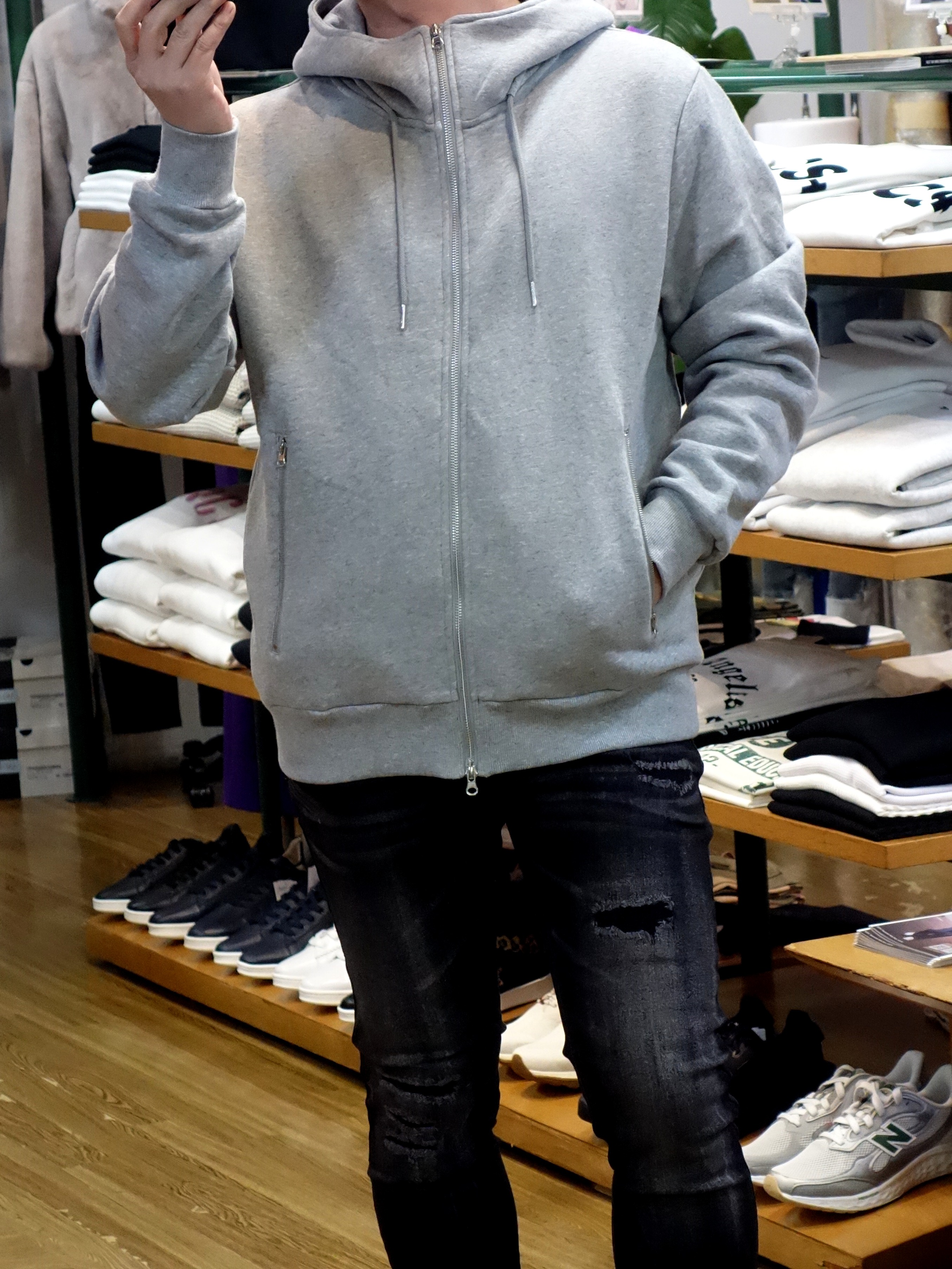 使い勝手の良いスウェット素材のフルジップパーカ。