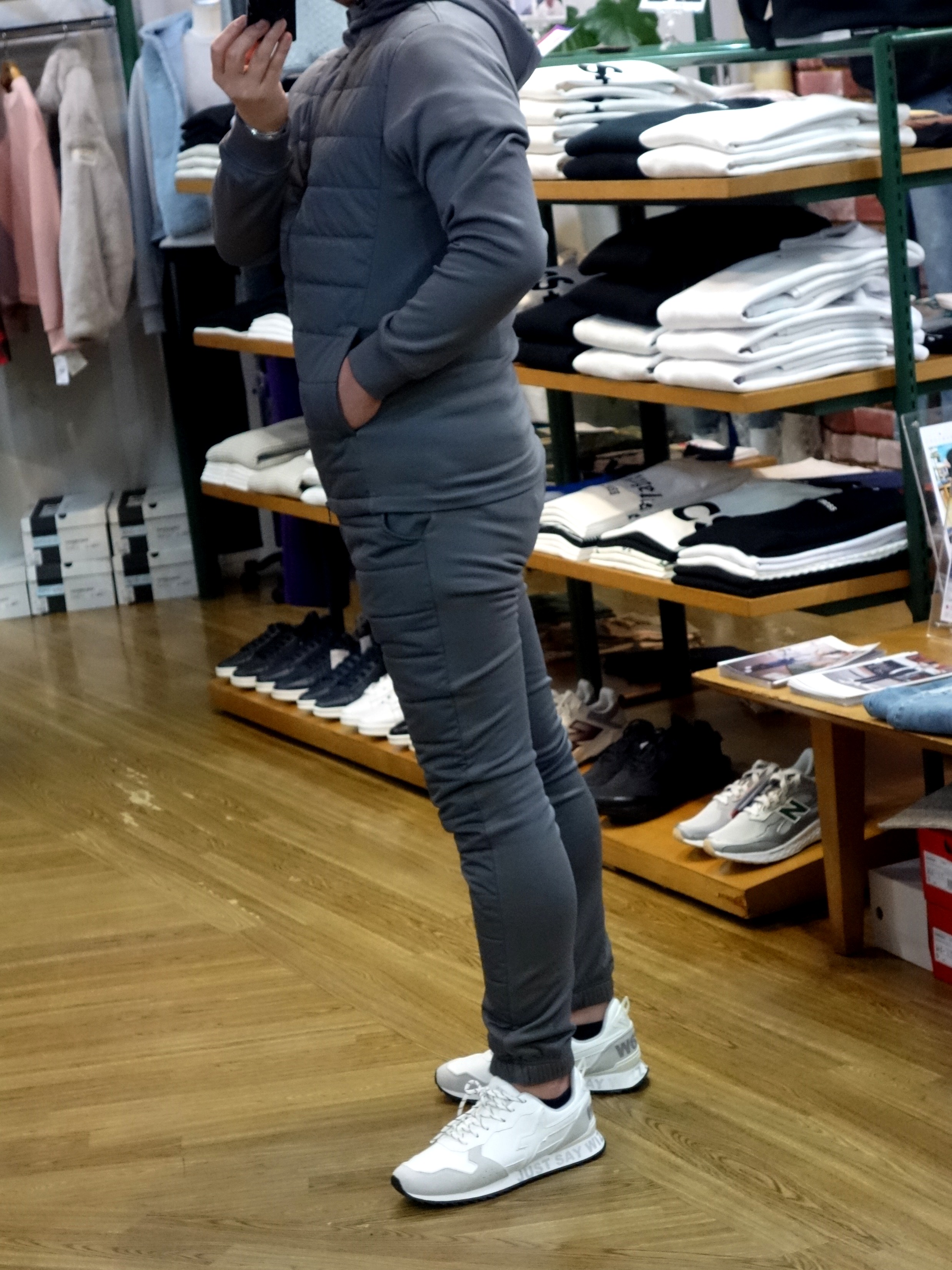 フロントは中綿キルティング、他はジャージのハイブリッド。