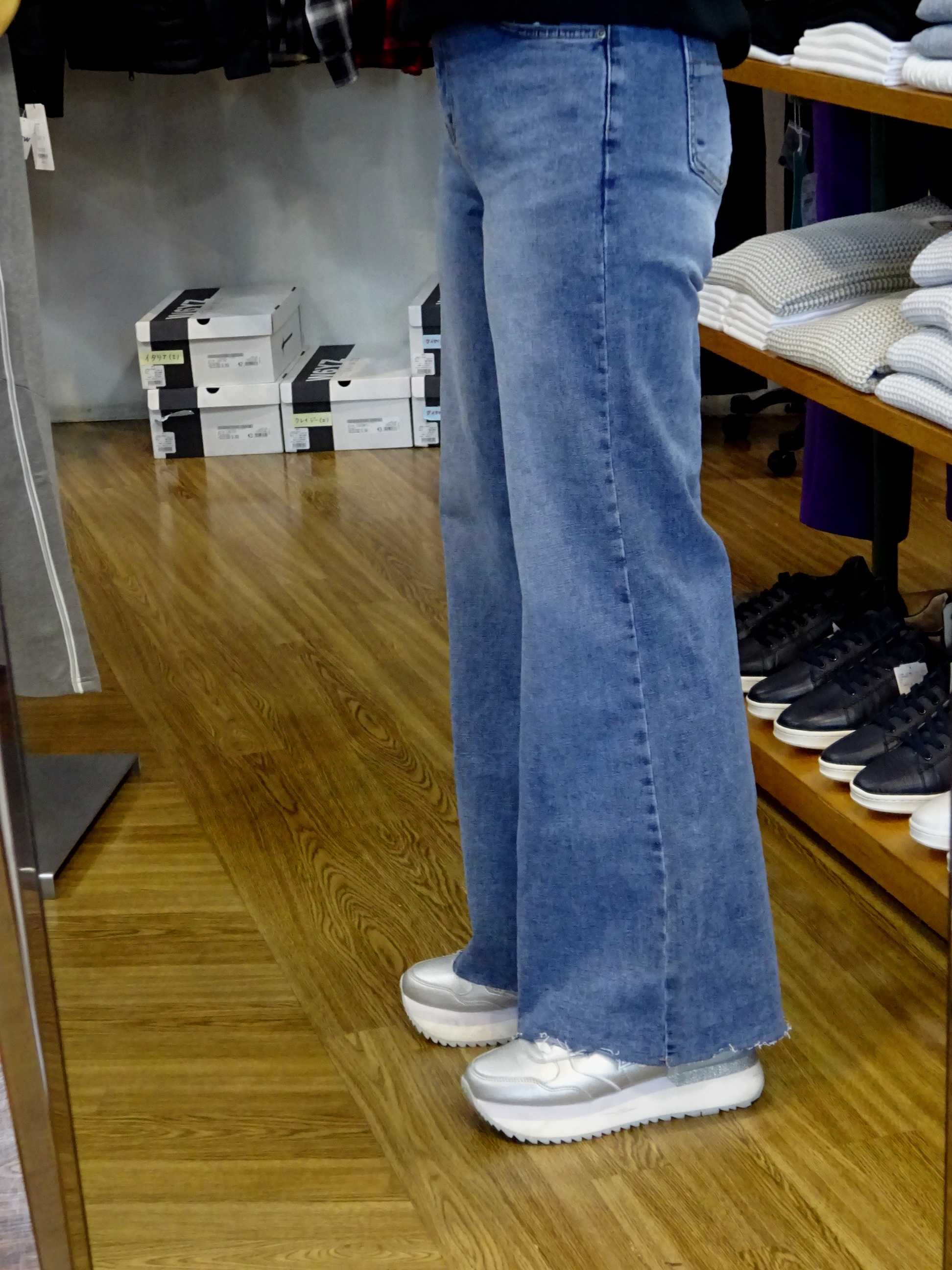 股上深めな今どきな裾に向かって広がるワイドデニムです!