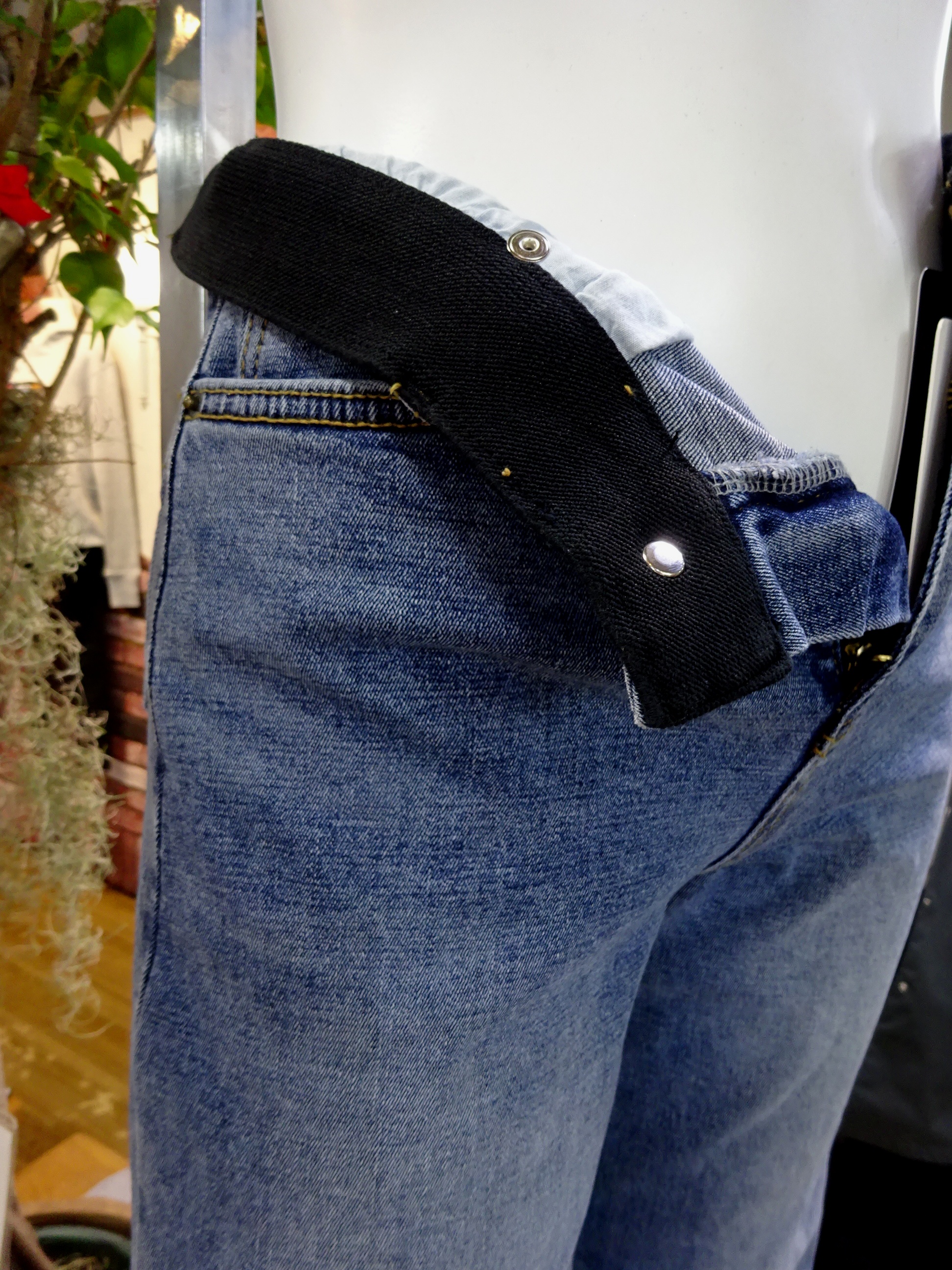 INDIMARKデニムのウエストの内側は太いゴムになっているのでとても楽にはけます!