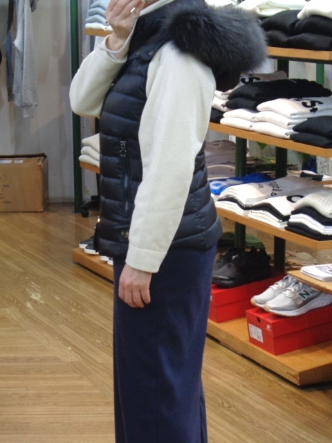 お顔周りの華やぐゴージャスなポーランド産のラクーンファーが人気のライトダウンベストです(*^-^*)