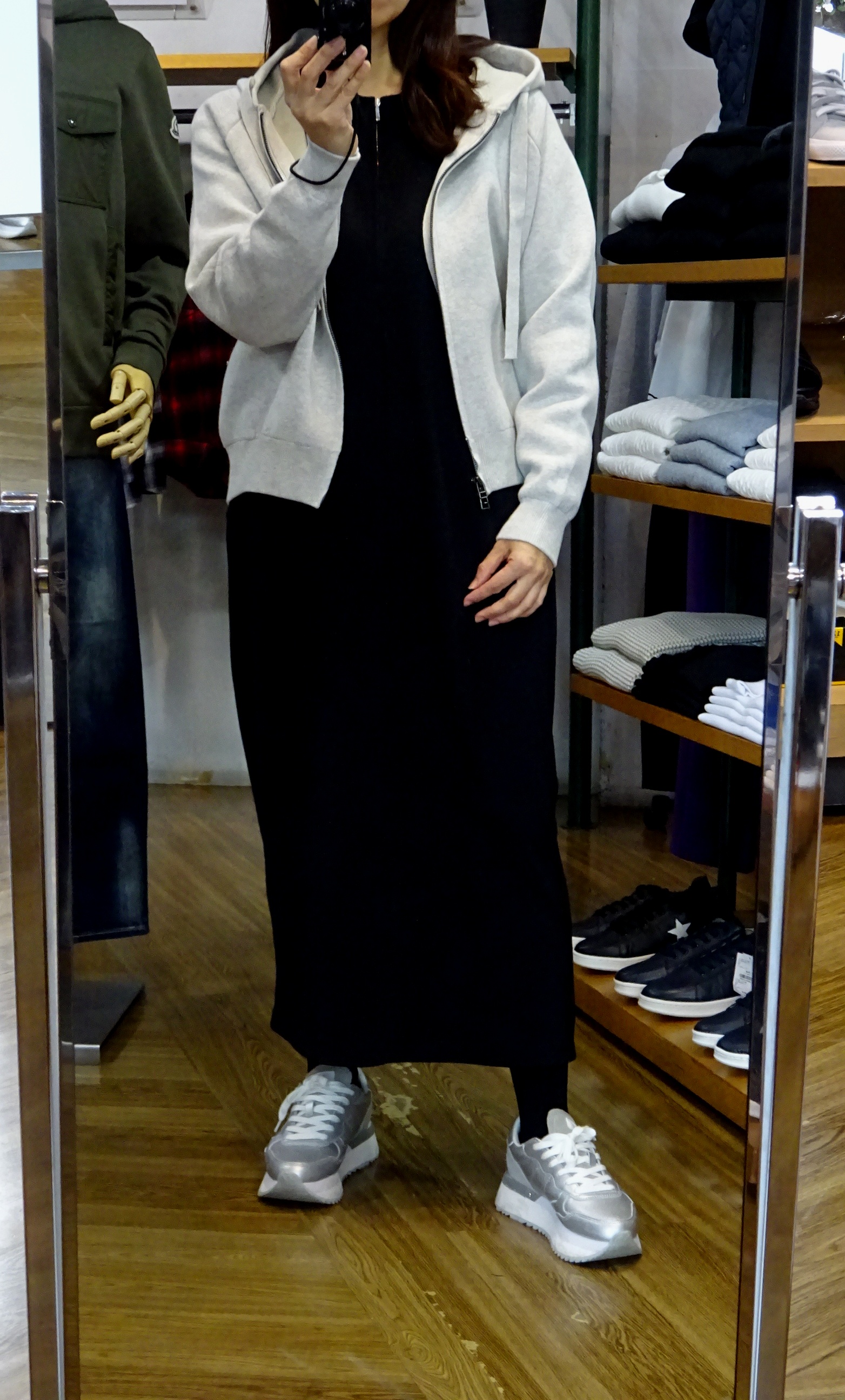 フロントZIPは胸元下まで下がるのでインナーをチラッと見せるのもオシャレです(^^♪