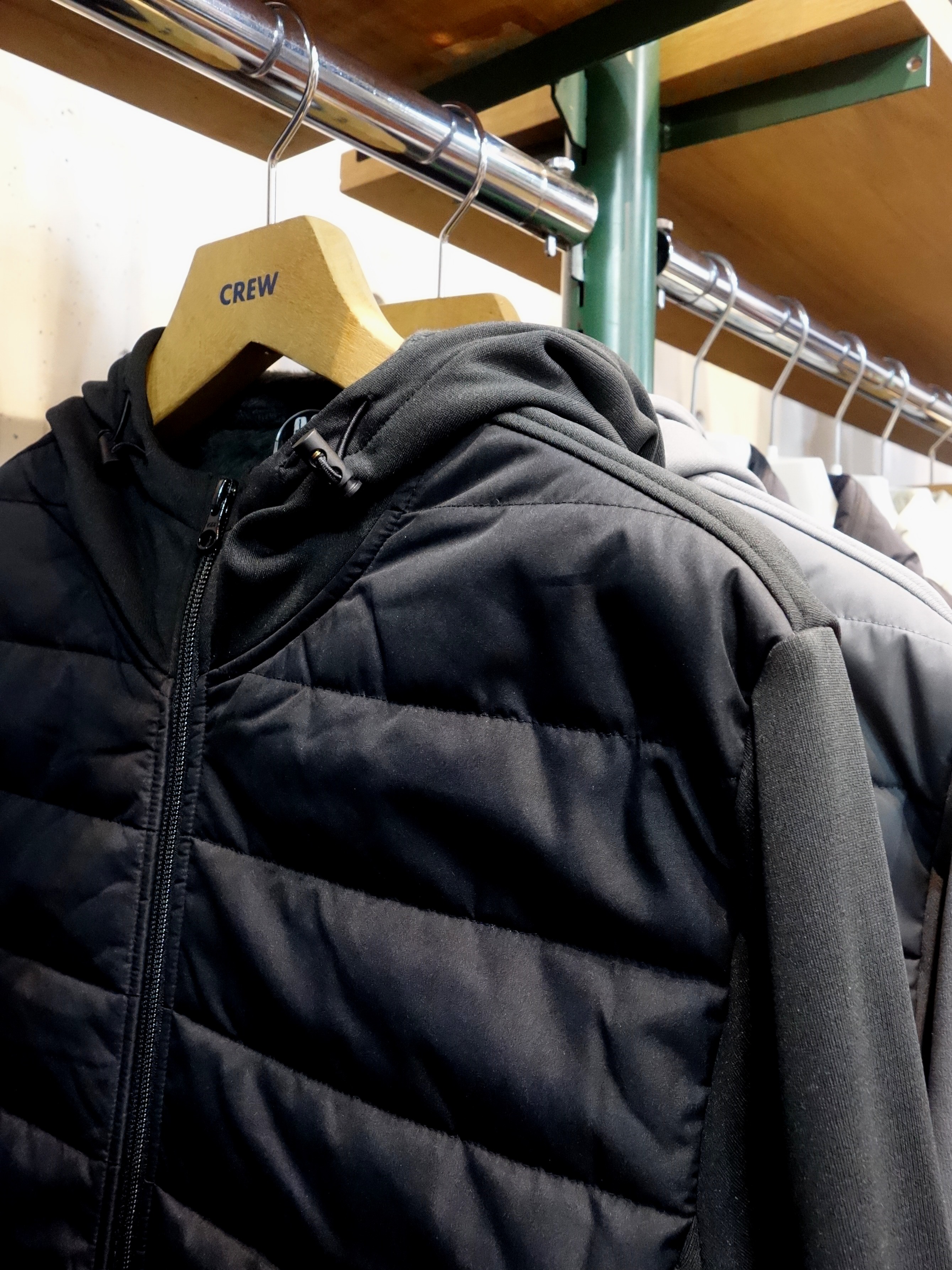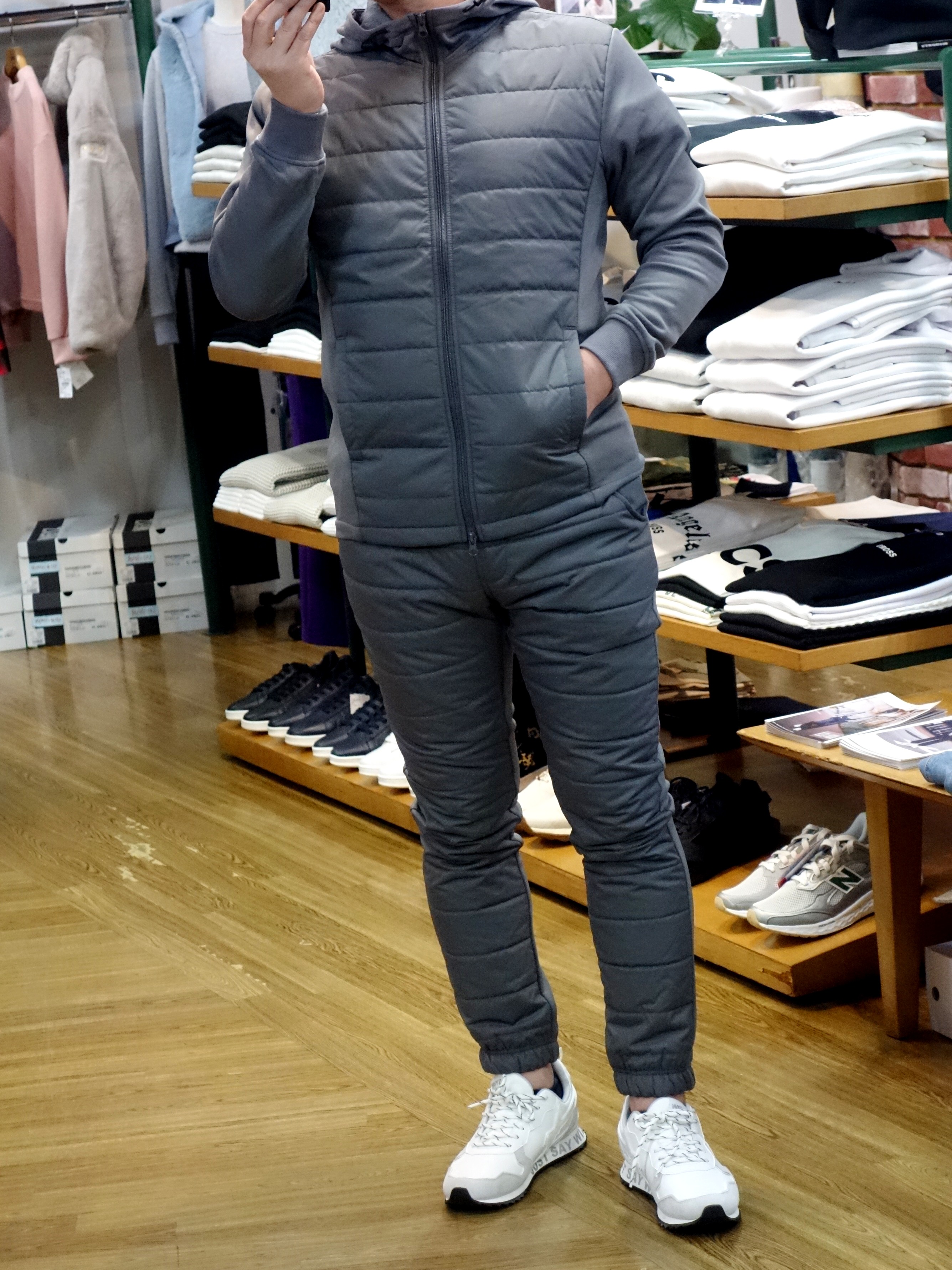 フロントは中綿キルティング、他はジャージのハイブリッド。