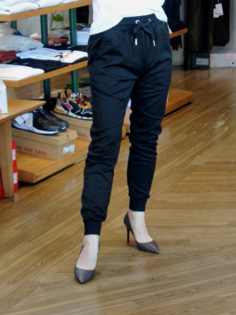 ウエストゴムで楽々に♪足元は裾リブでキュッと絞られて、キレイ見えするシルエットでリピートされる方も多いです☆