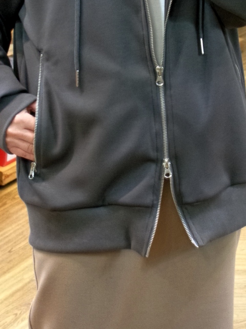 春らしい陽気を感じられるようになりまして、再入荷分もご好評を頂いているハイネックフードのZIPパーカ♪♪