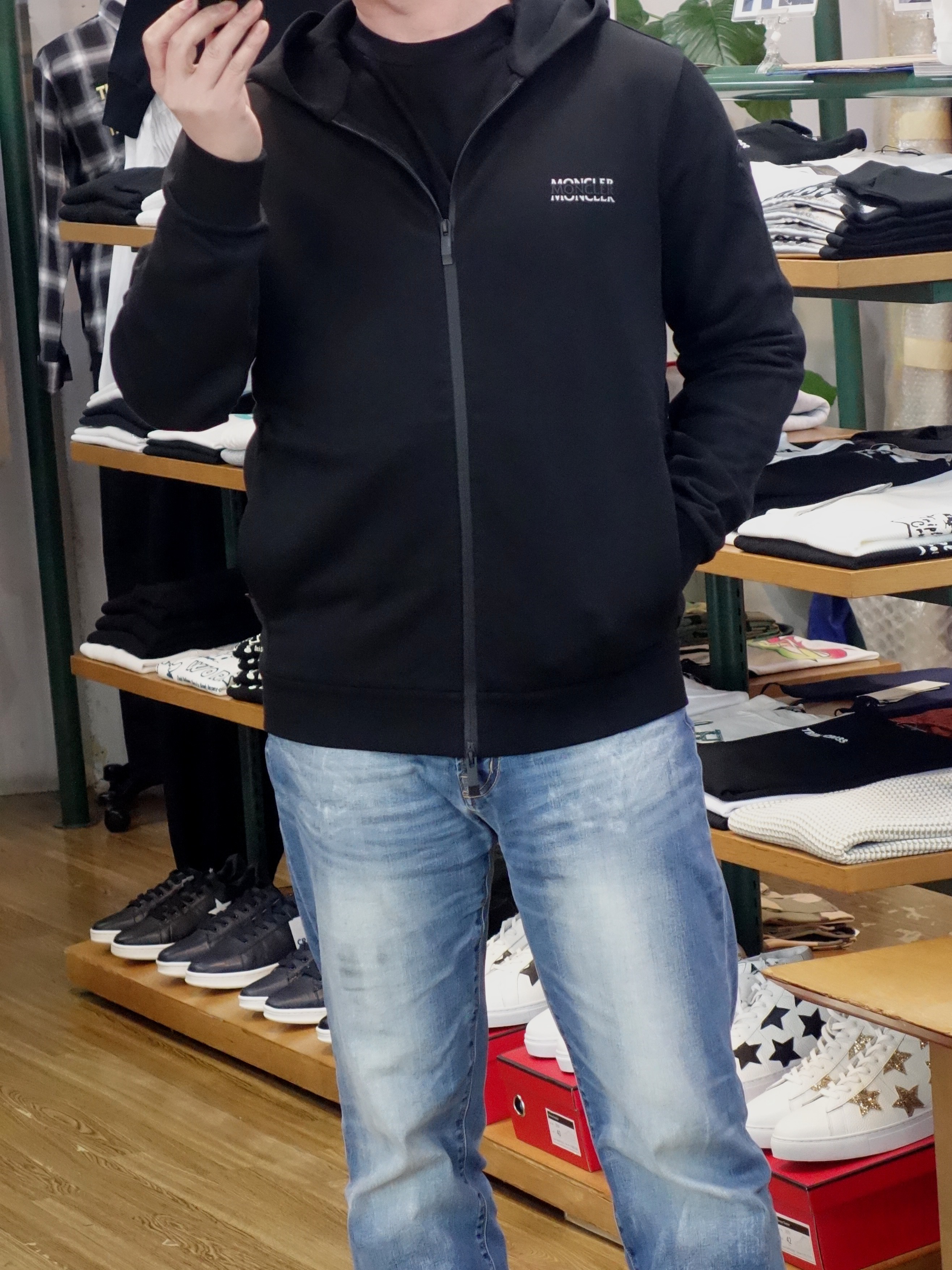 MONCLER(モンクレール)26SS「マットブラックフルジップパーカ」