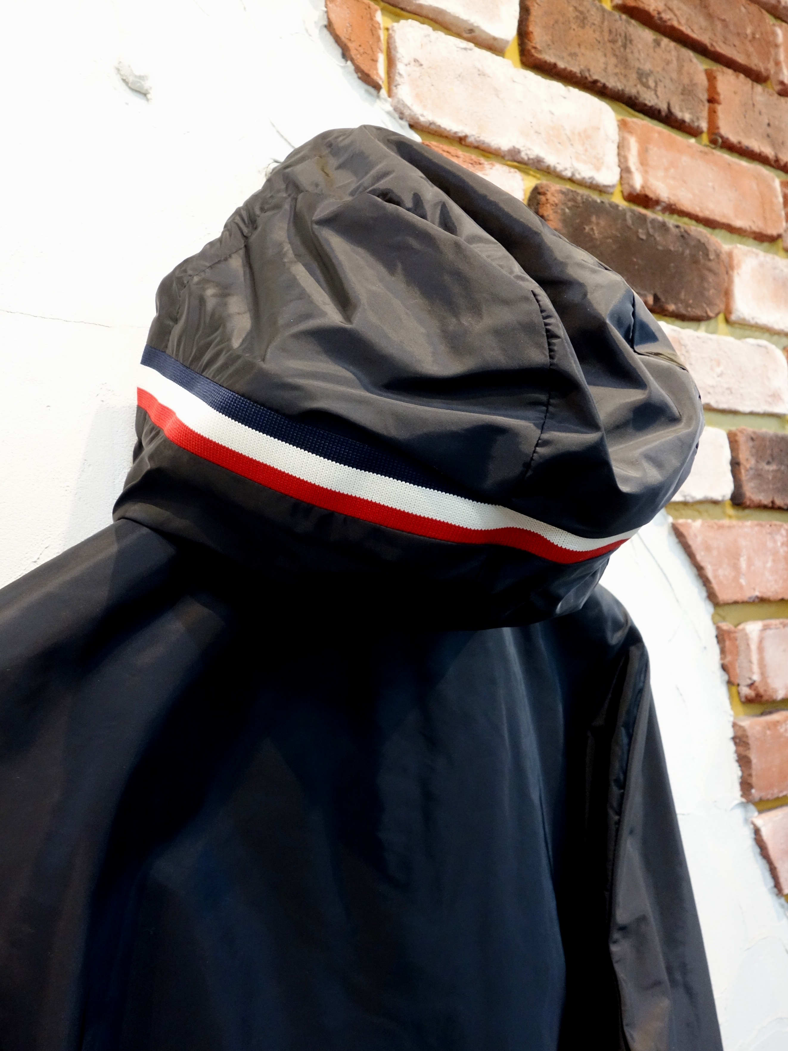 ■フードにアイキャッチ度◎のトリコロールテープ。