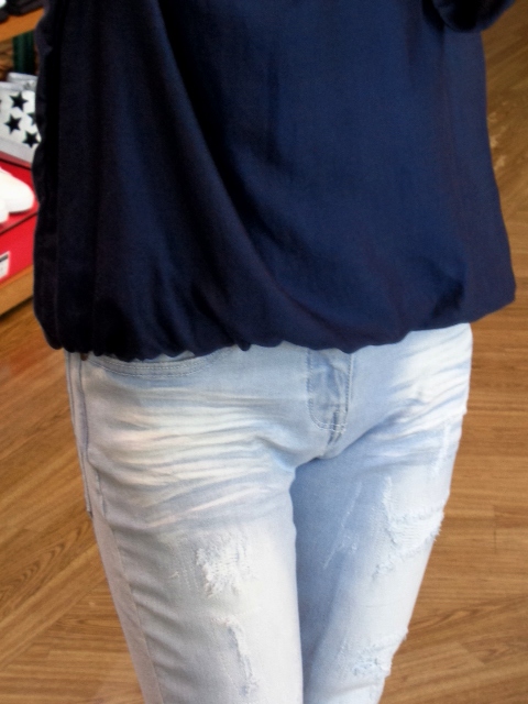 ・袖口をロールアップして程よくボリュームを加えた5分袖がお洒落見えして、裾ゴムで腰回りにフィットする大人なバルーンシルエットが甘さ控えめになった新作トップスです( *´艸`)