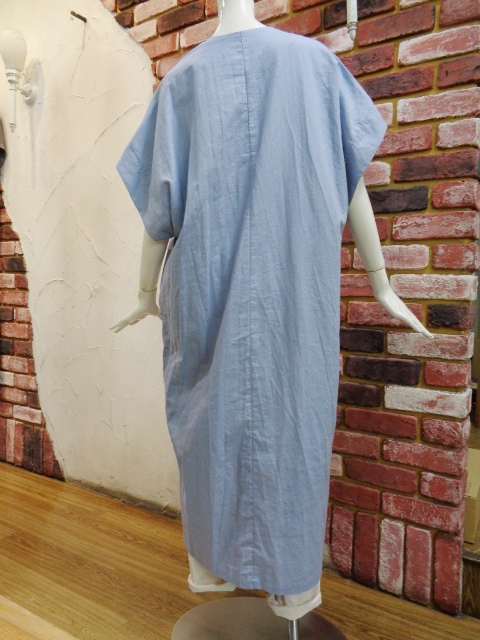 ブがお洒落見えして★コットン混紡の麻素材で涼し気にレイヤードできる♪たっぷりな身頃でゆったり纏える深Vネックのロング丈サックワンピース★☆
