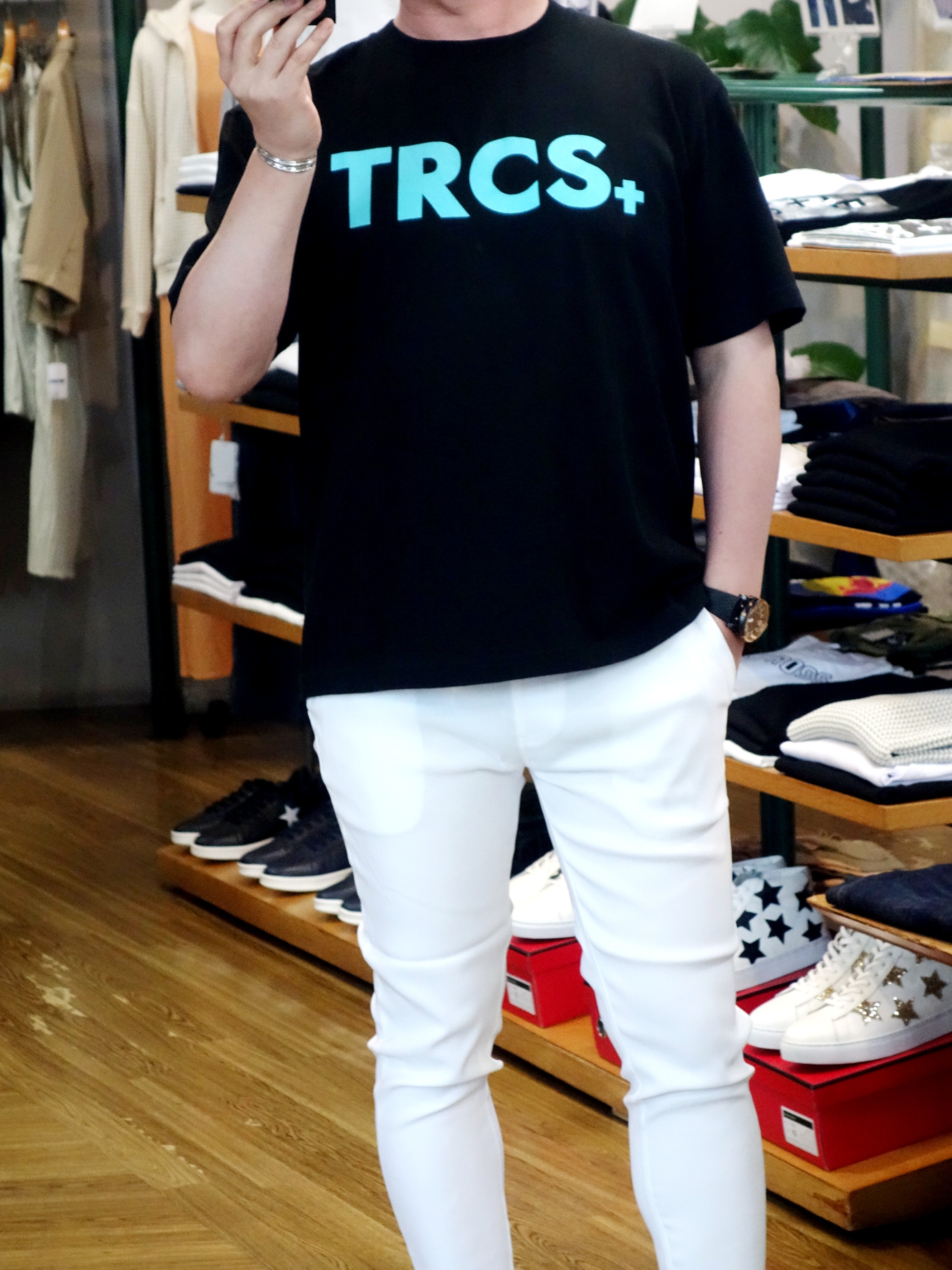 日本人体型に合わせた袖丈、着丈デザイン |  フロント部分には旬のカラーで「TRCS」のプリント |