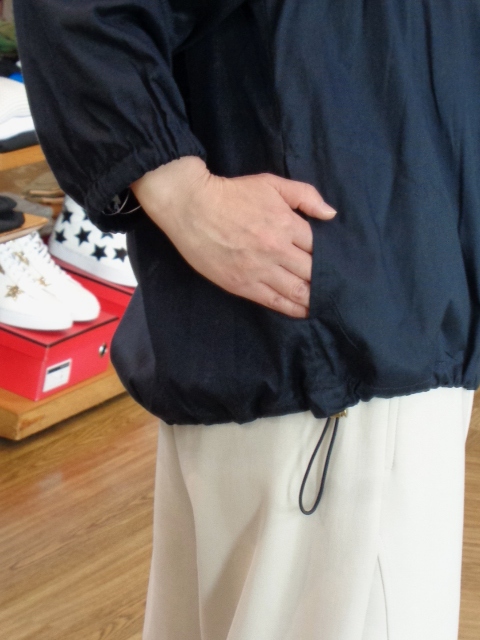 ・旬のゆったり幅広な身頃がサラリと羽織りやすく!お袖も手首が覗くほどのスッキリ丈になって♪裾のドローコードでお好みの裾幅に調整して頂くことも可能です☆