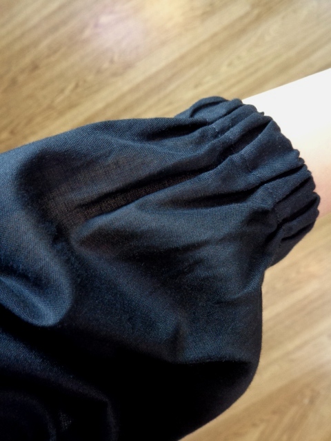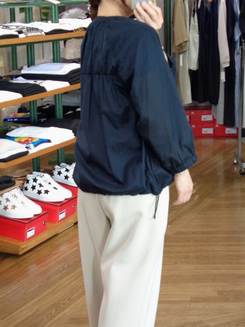 ほんのり透けのある涼し気なシアー素材です♪袖口がゴムで絞られているのでお袖まくりも楽にして頂けますよ(*'ω'*)☆
