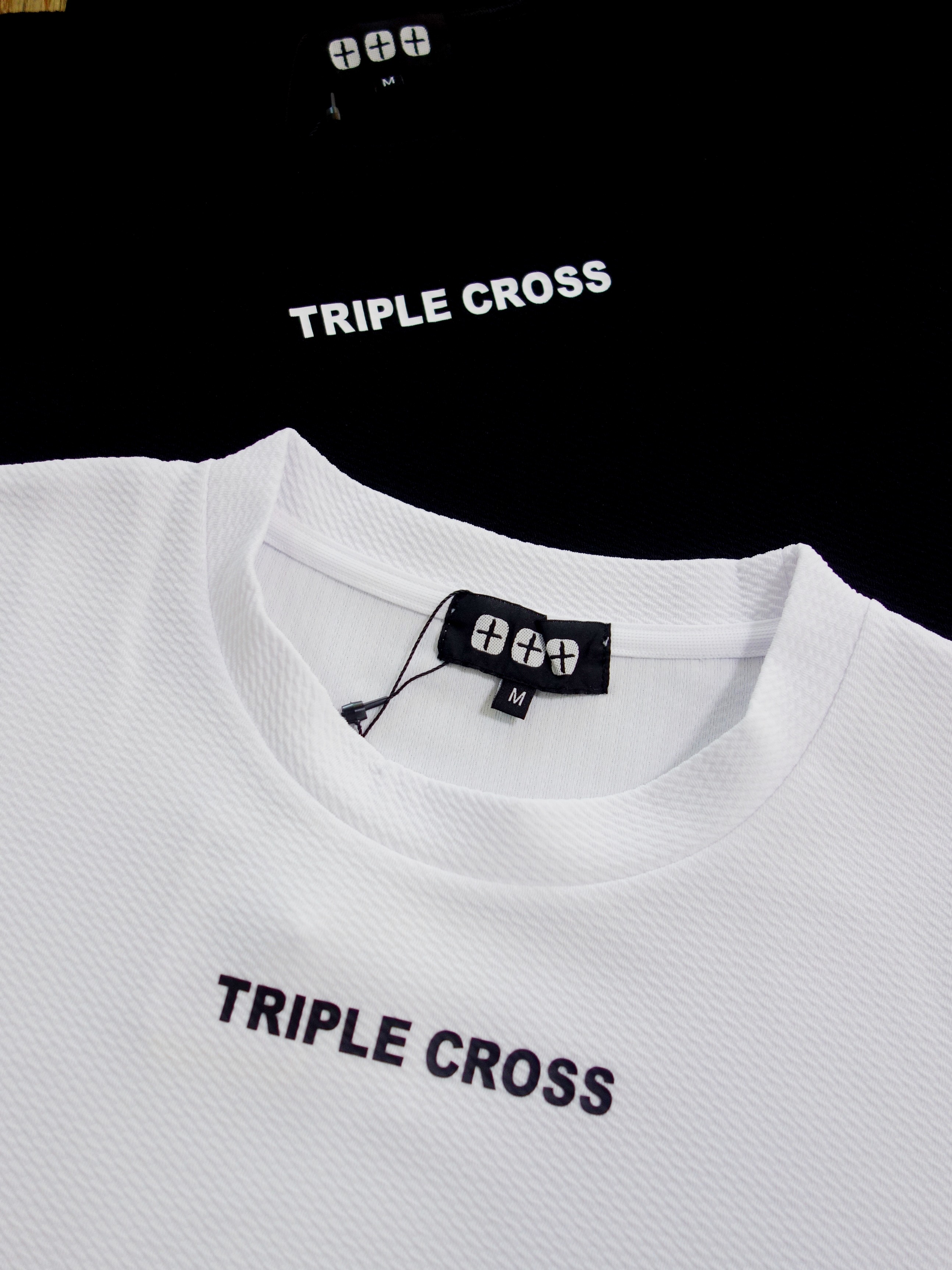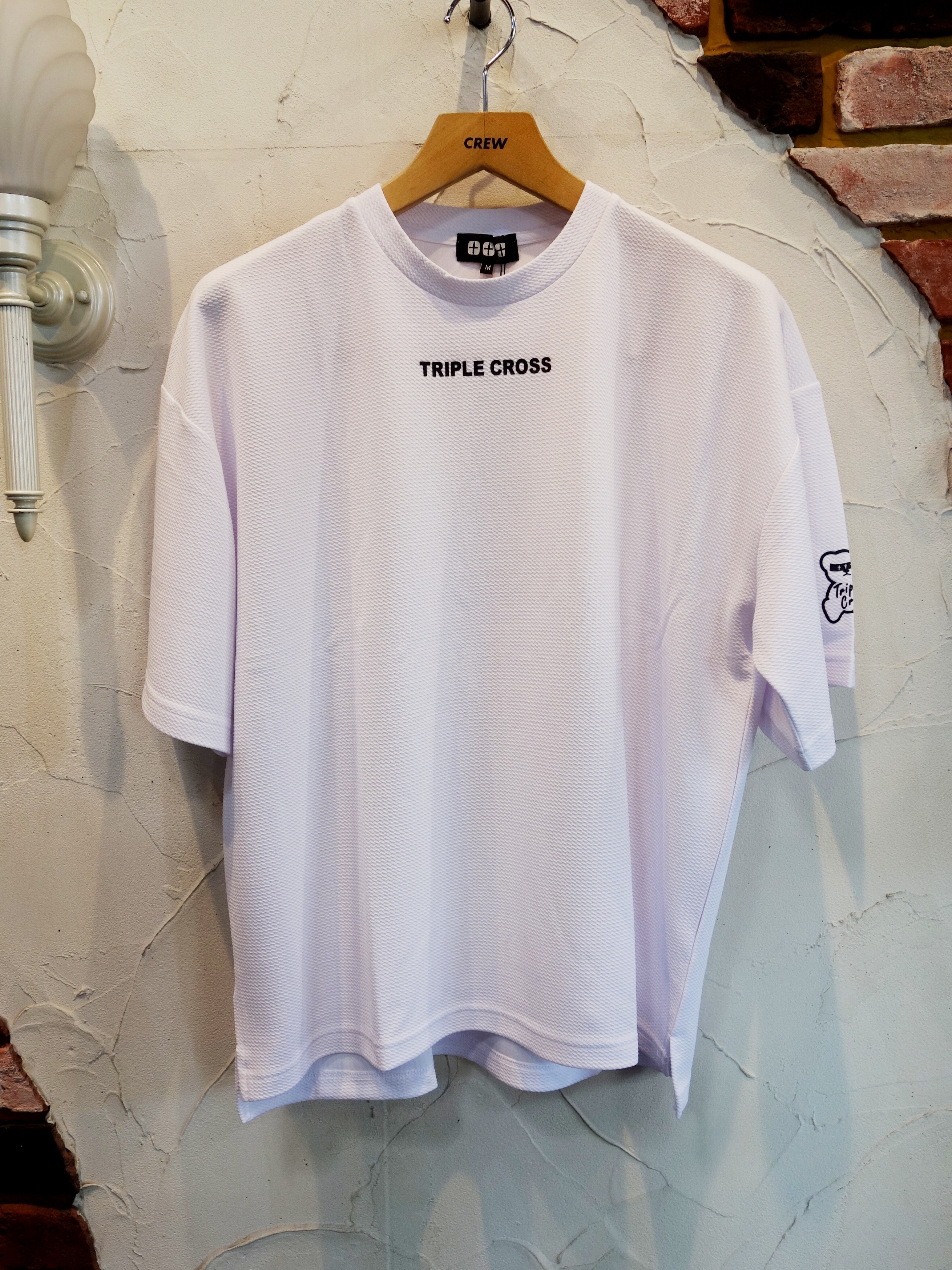 フロントにTRIPLE CROSSロゴ、 左袖にTRCSベア |  ホワイト、ブラックの2カラー、¥5,390です |