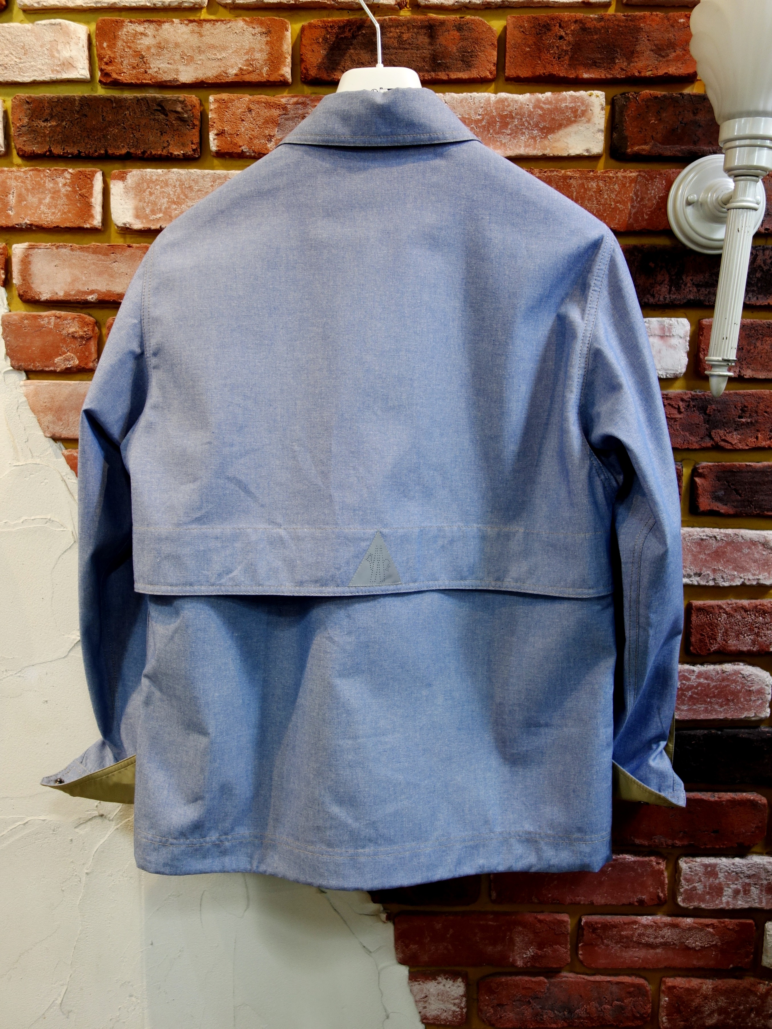 素材は撥水加工シャンブレー 、両胸にフラップポケット、両脇にコンシールポケット |  前立て、袖の内側にタフタ生地の補強 |
