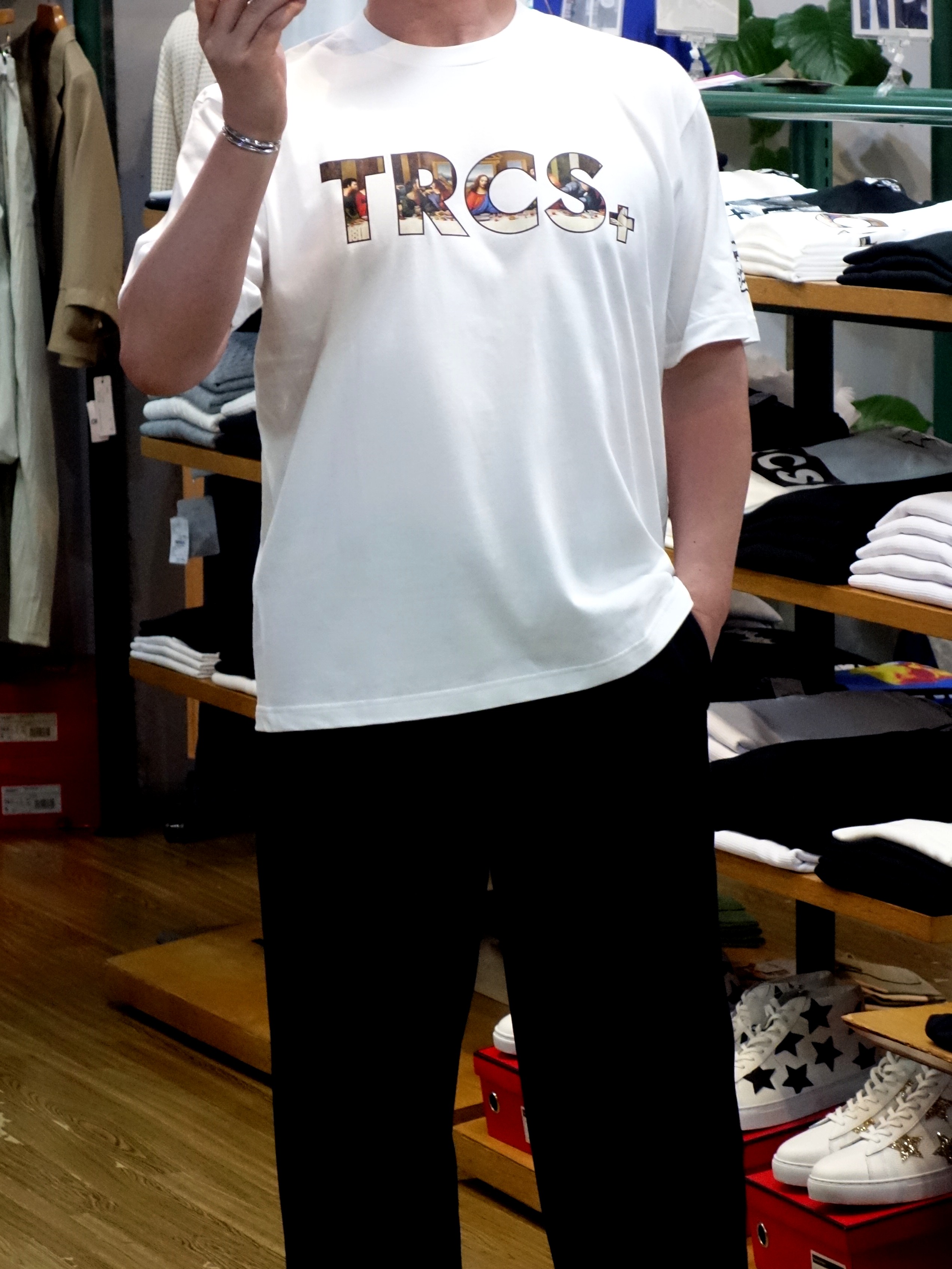 連休前に追加が間に合いました!トリプルクロスの人気モデル |  TRCSロゴの中にダヴィンチの名作をプリントした「ペインティングTee」 |