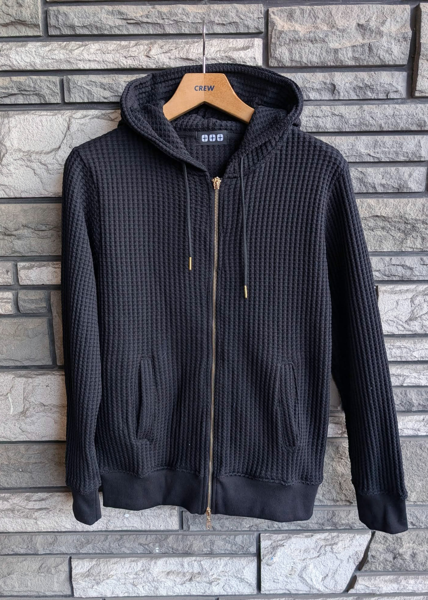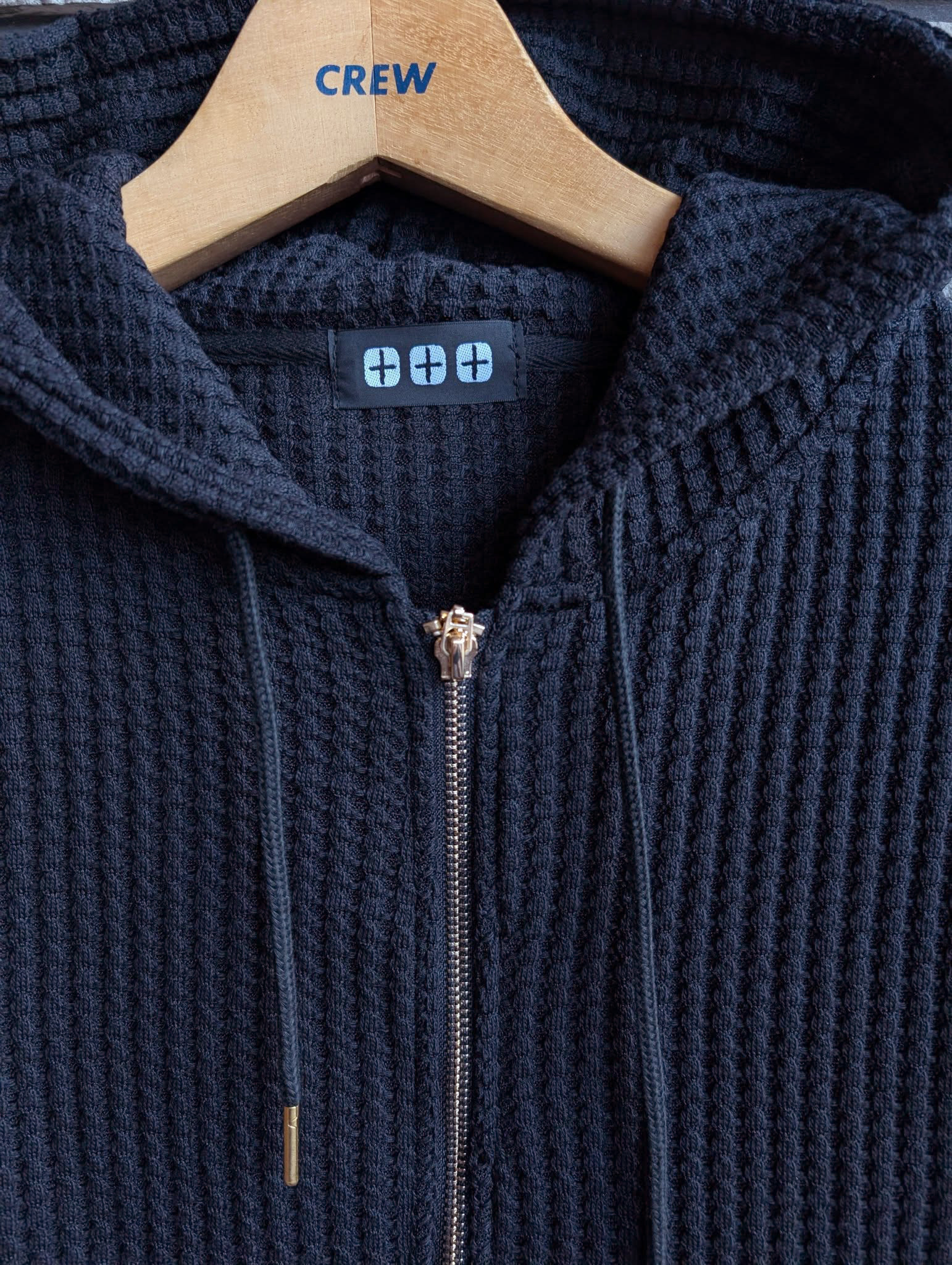 ★★素材の迫力と、レザータグなどの付属の上質さだけで目立つ、厚地の柔らかなスウェットです(ブラック)