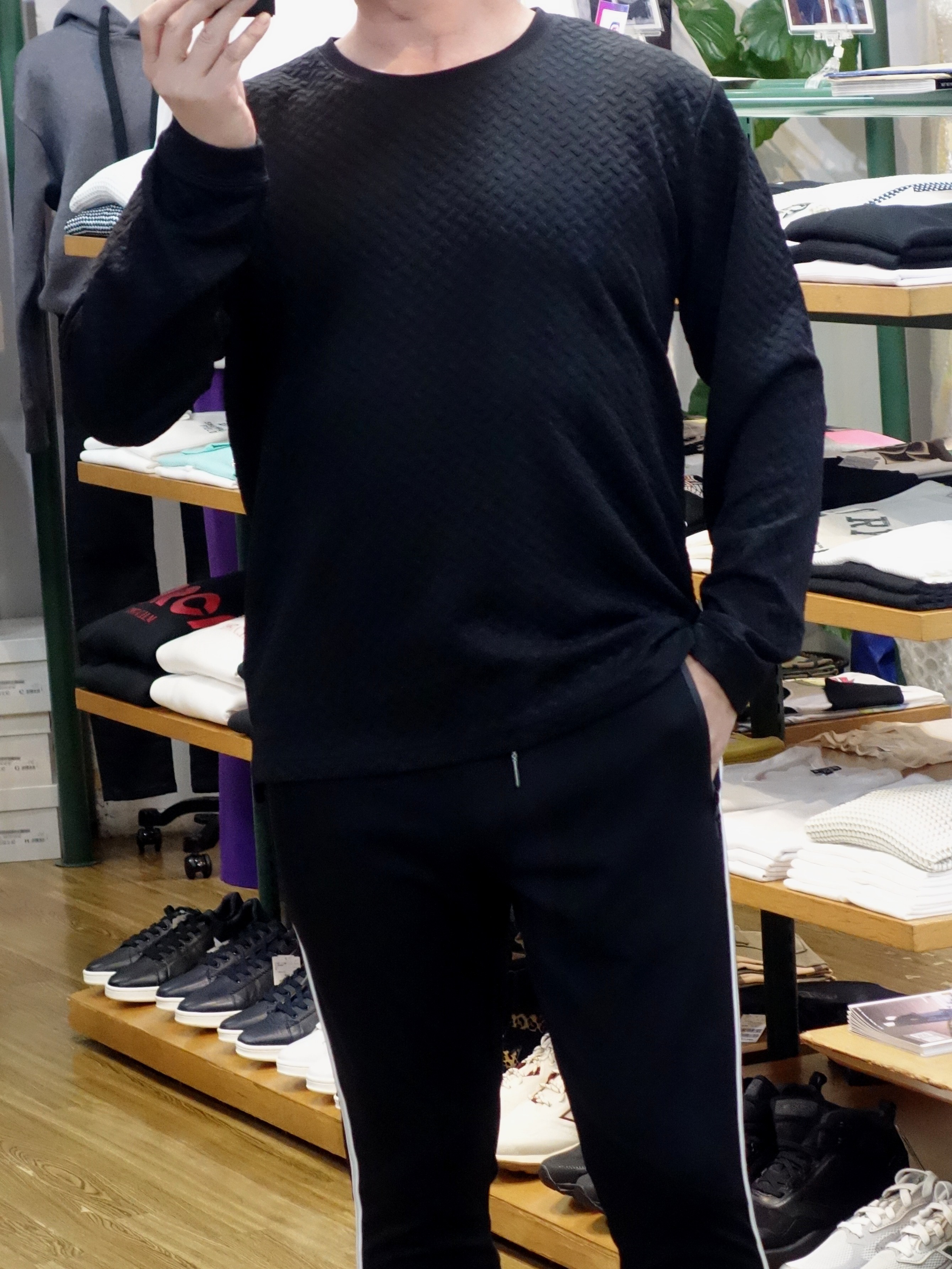 ニットの様な上質感で肌触りの良い一着です |  表面に細かな長方形を立体に編み込んだ酒脱柄 |