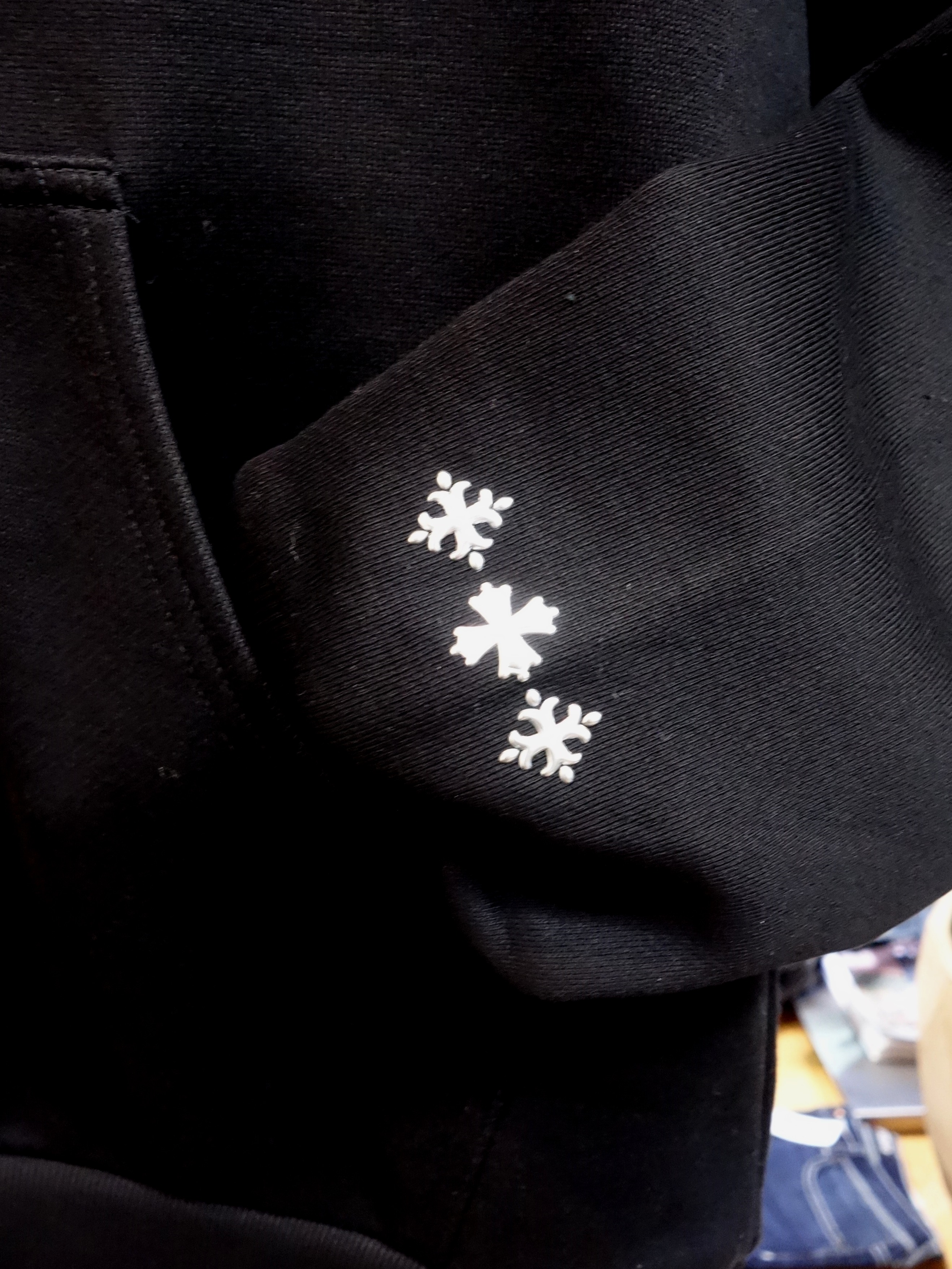 左胸にブランドロゴ、袖にクロスロゴのアクセント |  カラー:ブラック、¥44,000⇒直ぐに使えるポイントで¥39,600です |