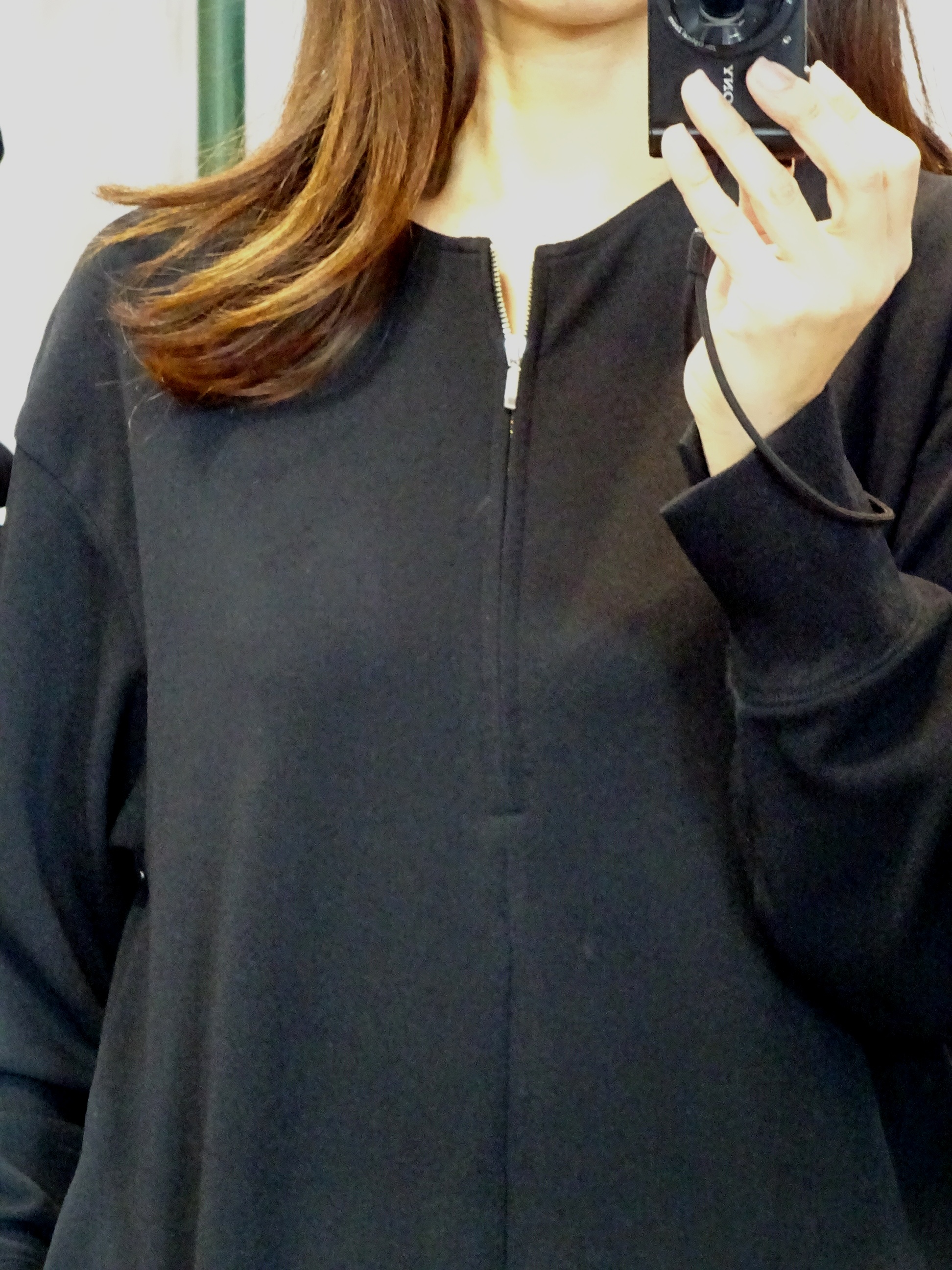 フロントのZIPは胸元下辺りまで下がるので薄手のタートルネックなどお好みに合わせてレイヤード出来ます! |  袖はゆるっと少し長めでスリットが入ってお洒落です♡ |