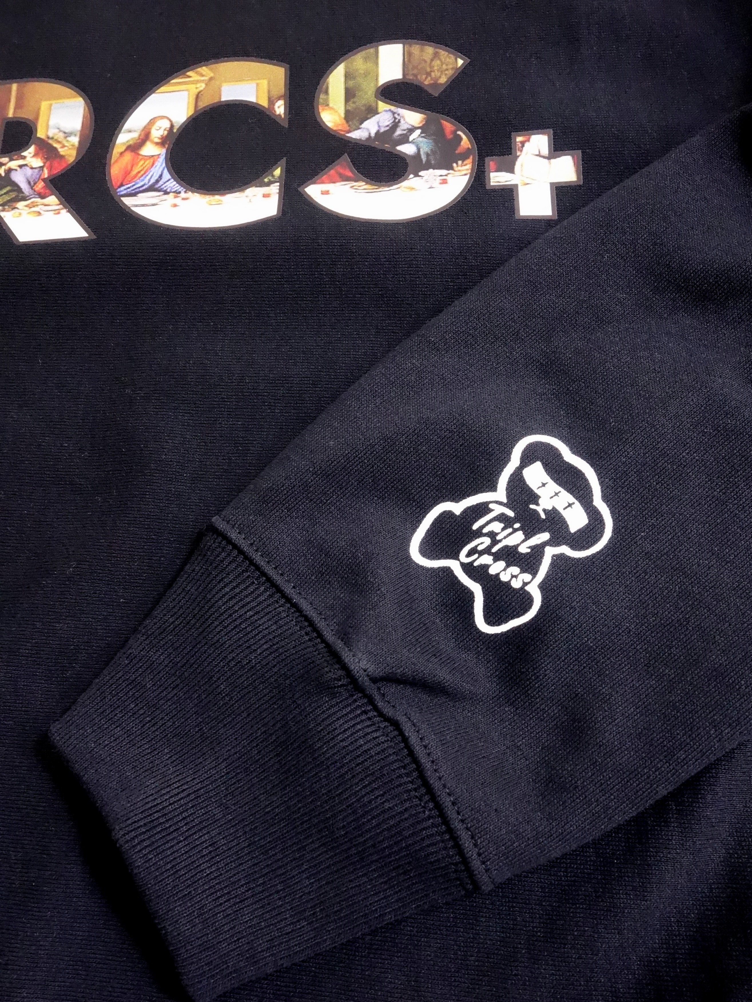 素材はいつものコットンジャージ素材で着心地◎ |  TRCSロゴは「最後の晩餐」ペインティング |