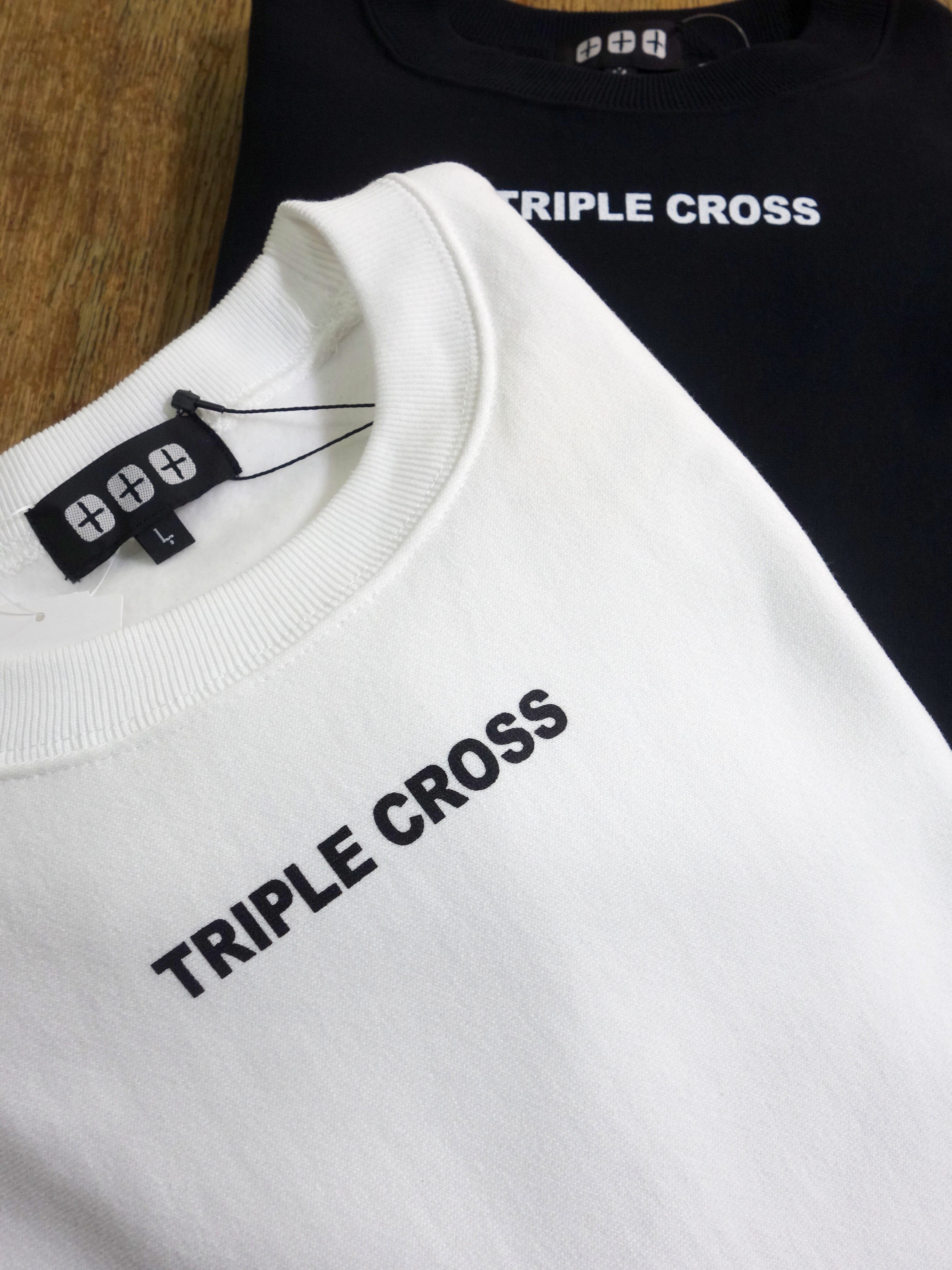 ネック下にはスモール「TRIPLE CROSS」ロゴプリント。