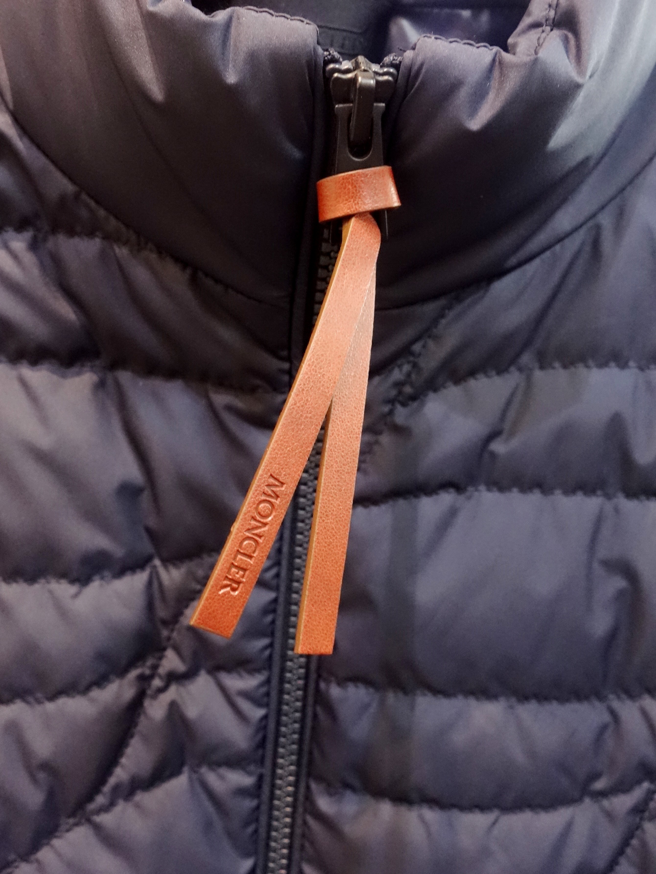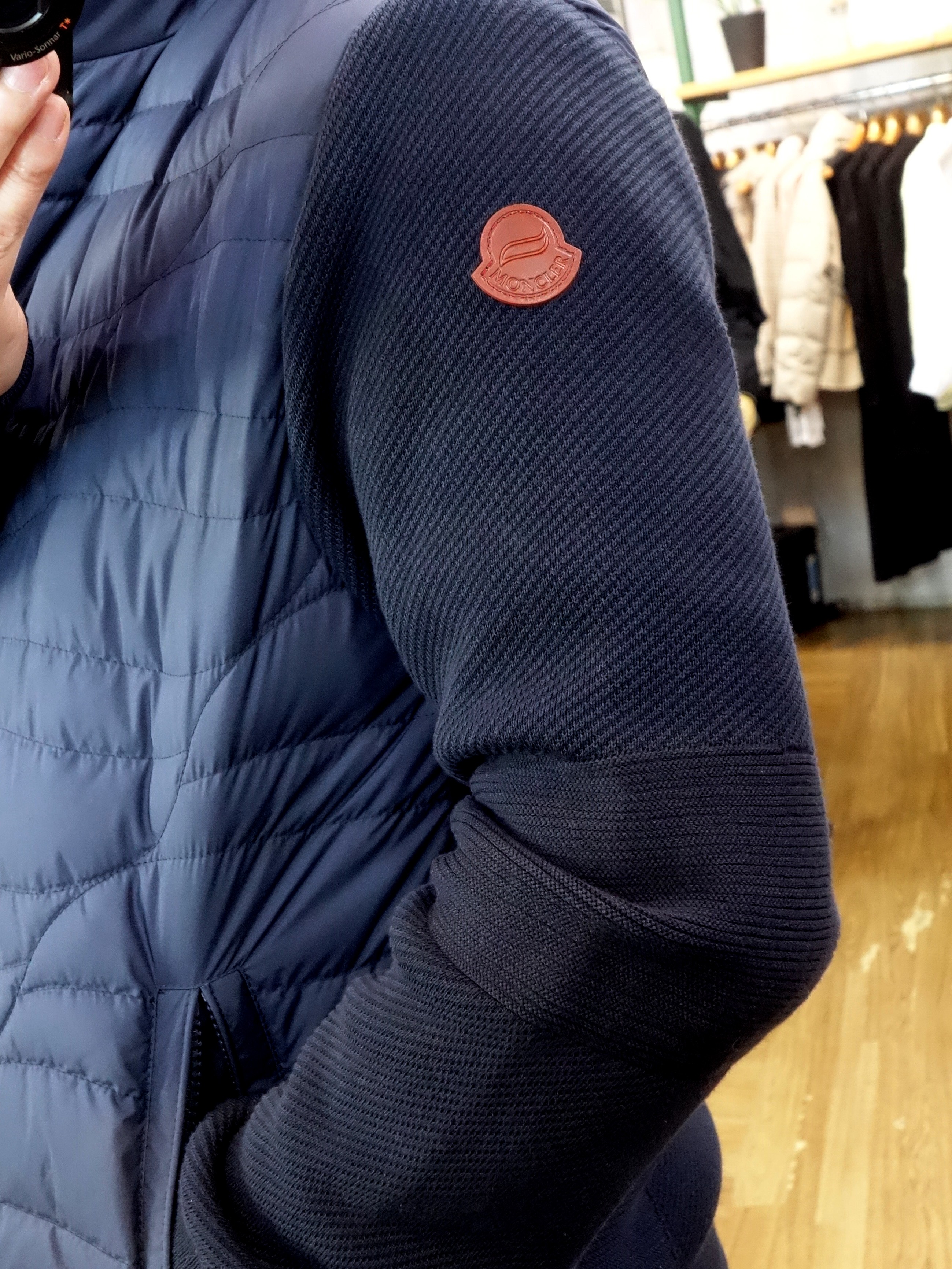 左腕にレザーのブランドロゴ、フロントジッパーにレザーアシスト付きです。