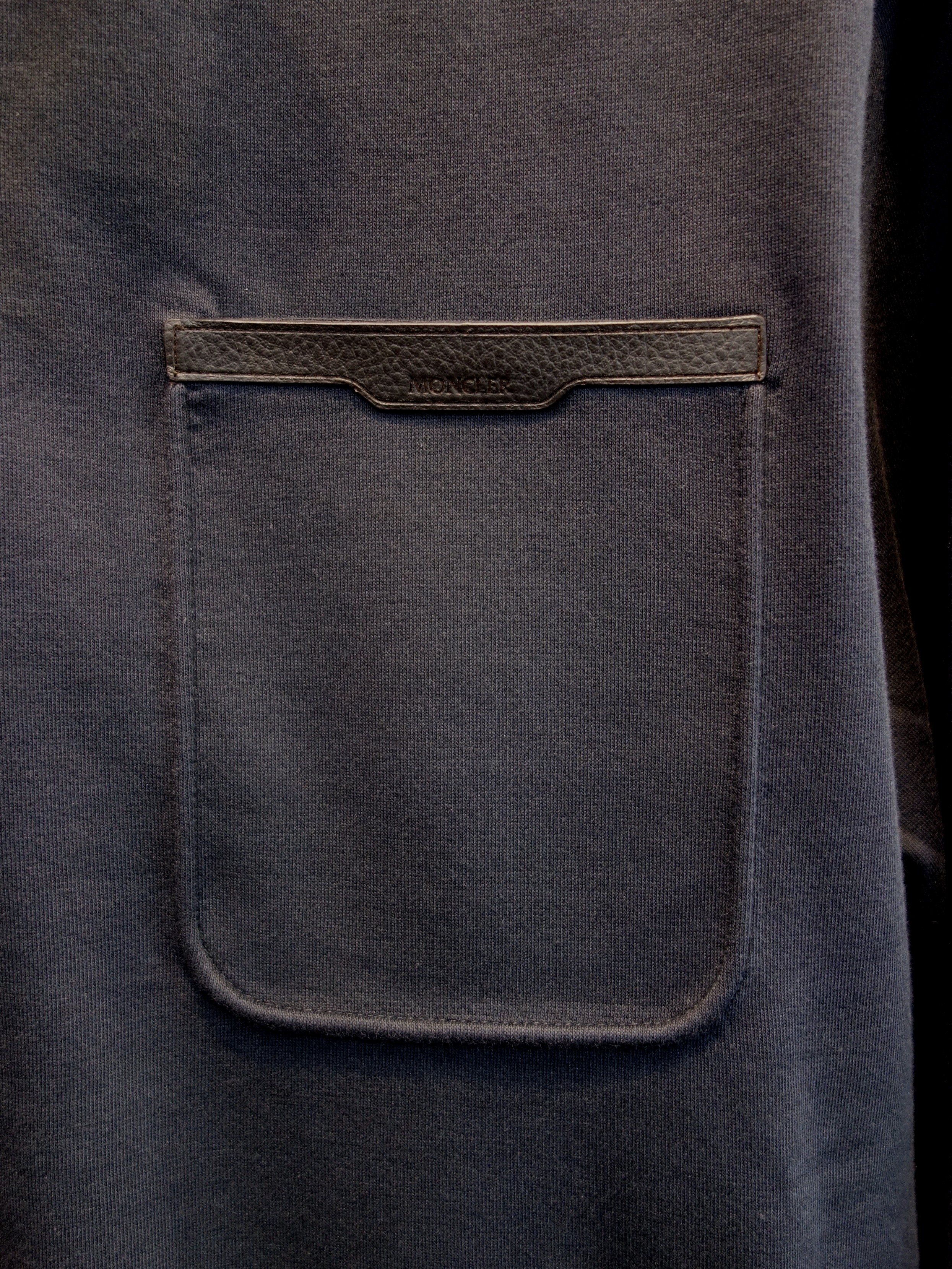 ・左胸のポケットは上部にレザー、内部はしつけ糸で留められています