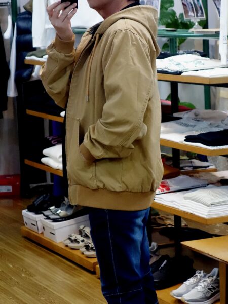 スタイルはルーズシルエットのフルジップパーカ。 袖、裾にリブ、フロントにはカンガルーポケット。