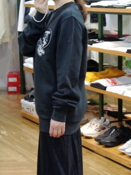 女性でSサイズを着用してすっぽりとヒップが覆われる着丈になります。