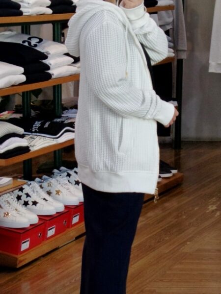 女性でMサイズを着用してヒップがすっぽりと被るほどの着丈になります。