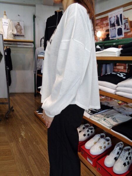 後ろ長めの前後差のある着丈に、裾がラウンドされて軽さの感じられるひと捻りもございます!