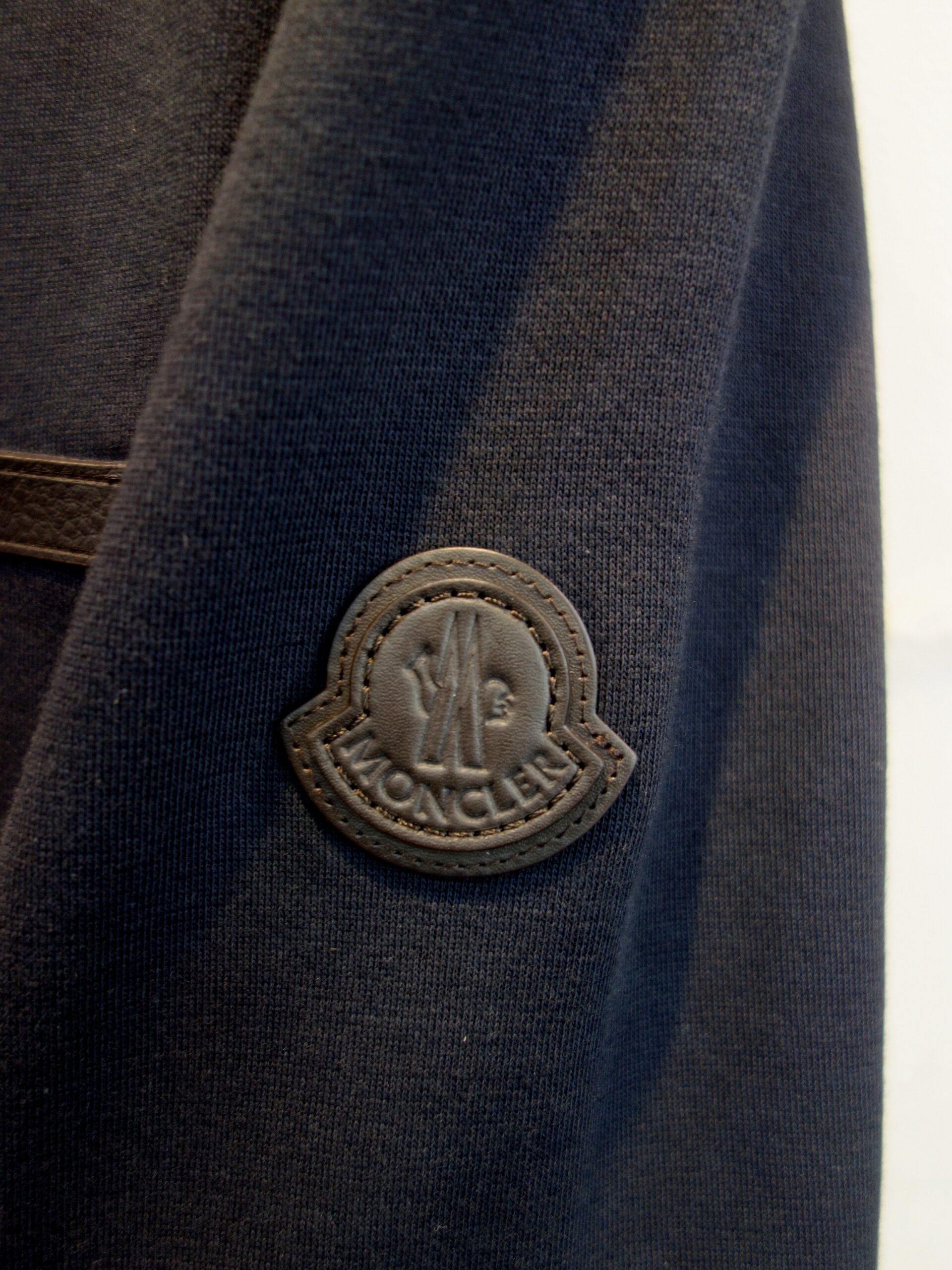 左胸のポケット上部にレザーの縁取り、左腕にはレザーアイコンパッチ