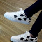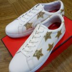■ロングノーズの美シルエットなレザースニーカーを★型レザーのアップリケでアップデート。