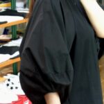 ③ボリュームのあるランタンスリーブがフェミニンな♪異素材ドッキングカットソー