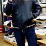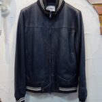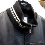 ボディは上質ラムレザー。襟、袖、裾にプレッピーな味付けのスクールライン入りリブトリム。