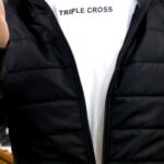 ネック下に胸元チラリなスモール「TRIPLE CROSS」ロゴプリント!