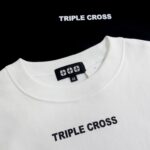 ネック下にはスモール「TRIPLE CROSS」ロゴプリント。