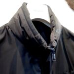 ・スタンドカラーにポリエステル素材の引き出し式フード