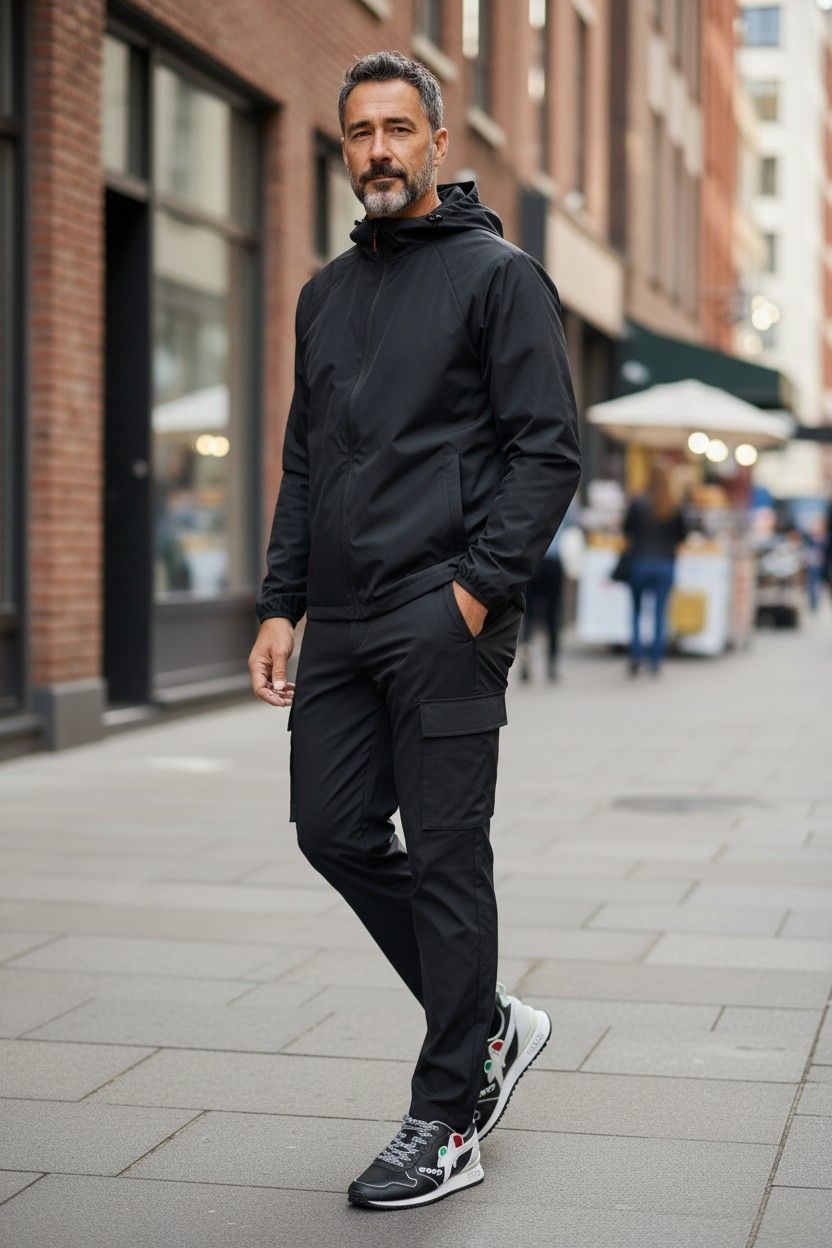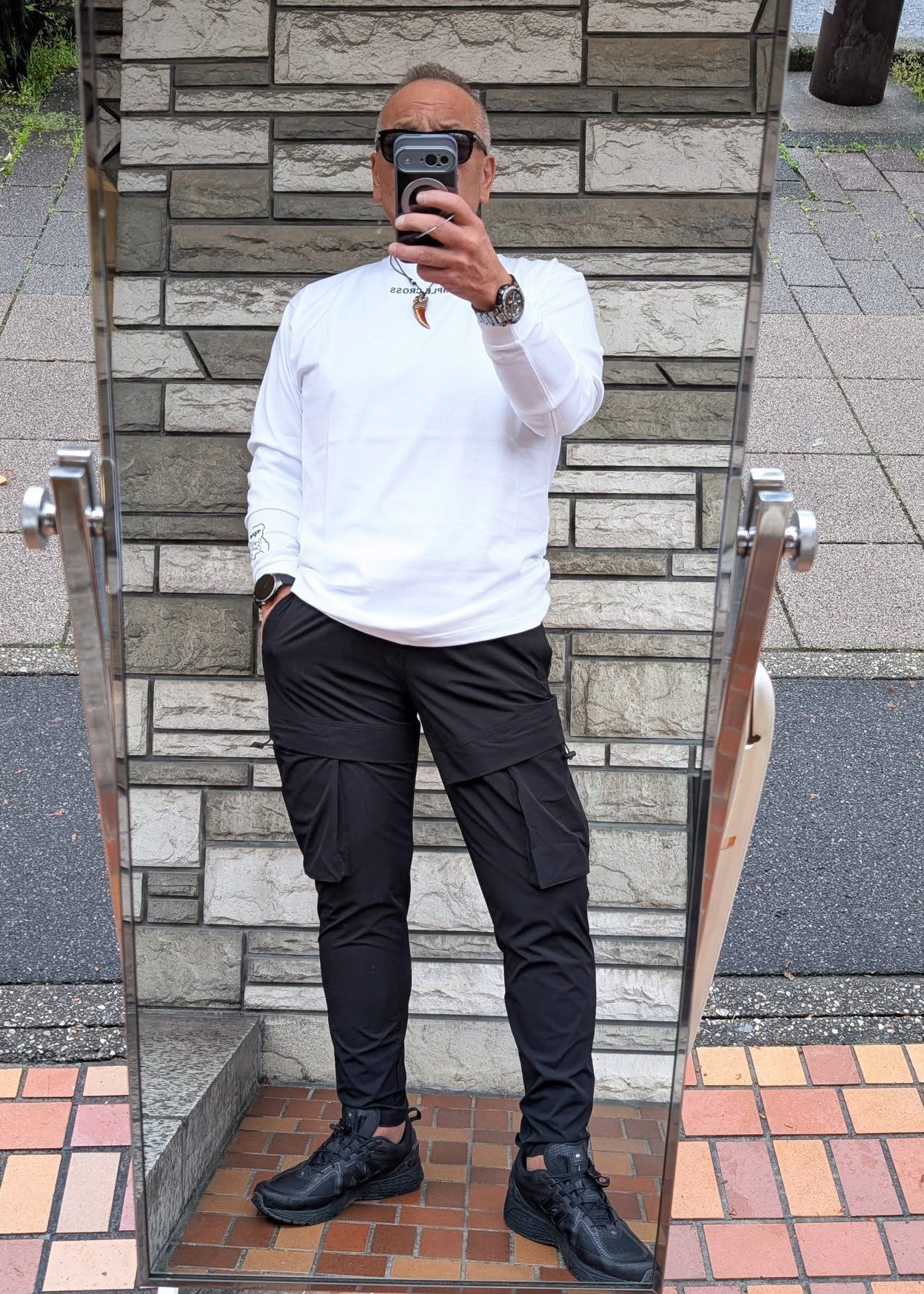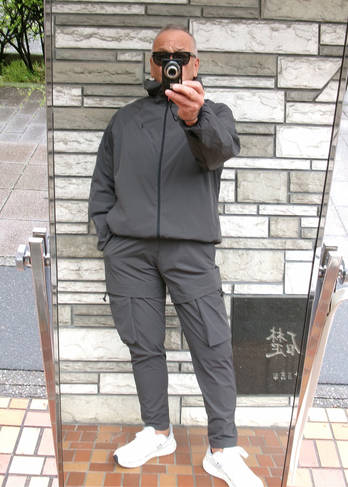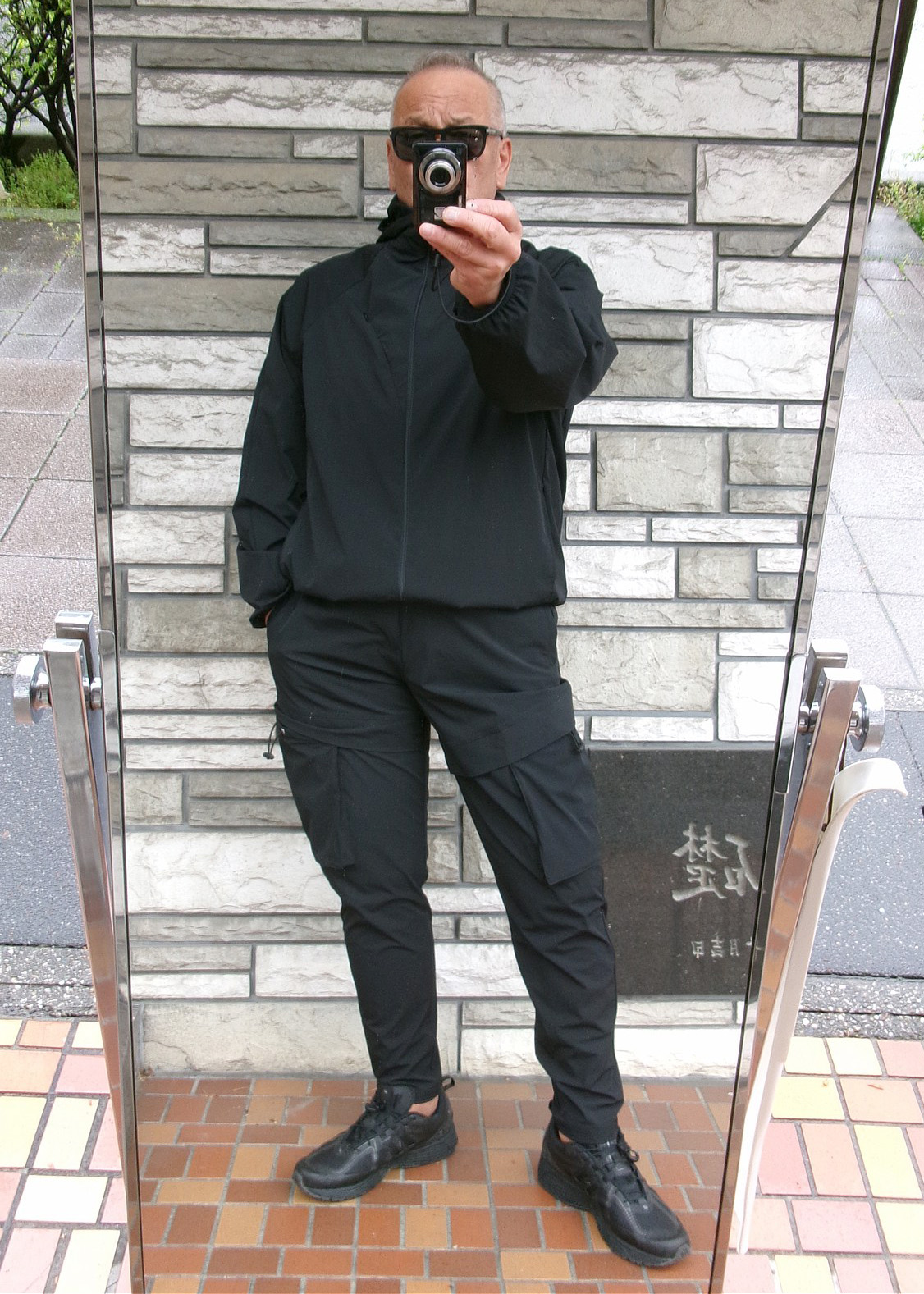 ★CREW別注の【セットアップにもなります】【普段着、ご旅行、ゴルフまでお使い下さい】【びよ~ん、びよ~んと快適なストレッチ】【少しだけのオーバーサイズでストレスなし】【超撥水で雨の日OK】【艶消しブラックで味のある色合い】肌に貼りつかないので、夏も着られるハイネックジップフードジャケットとカーゴユーティリティーパンツをアップしました!