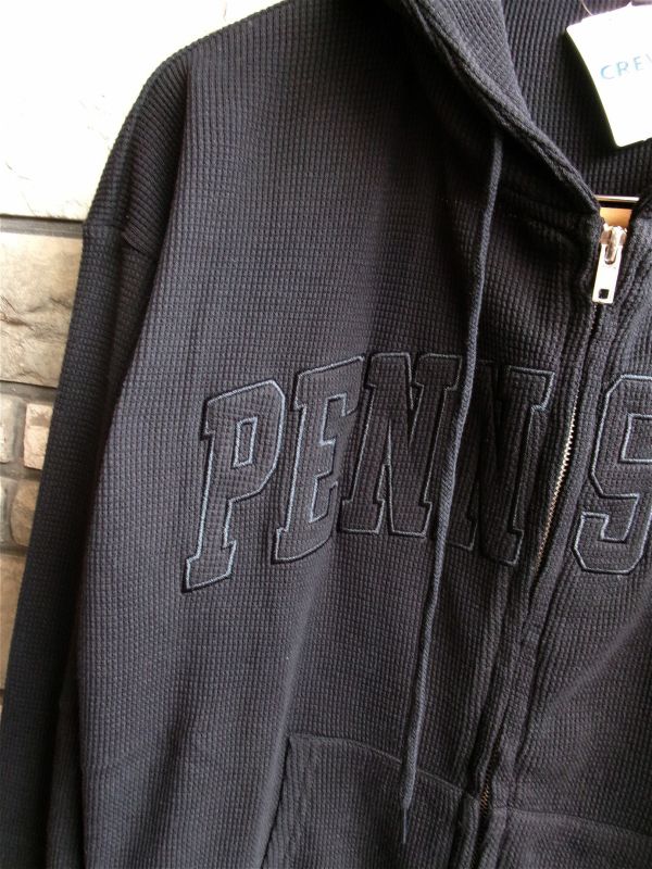 ★★素材の迫力と、レザータグなどの付属の上質さだけで目立つ、厚地の柔らかなスウェットです(ブラック)