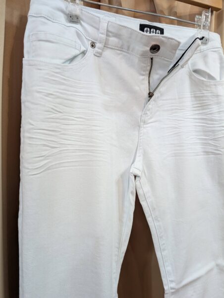 ★TRIPLE CROSS(トリプルクロス)のストレッチしてつるつるなホワイトパンツがセールです!★★【Mサイズ、Lサイズだけの在庫なので¥11880(税込)を¥8690(税込)のセールです】★【今回追加生産しようと思いましが、コストが上がり過ぎていて、生産側と交渉中なので、まずは今回在庫品だけセールでご奉仕価格です】※現状の在庫をなくしてリセット致します★★【このホワイトデニムの穿き心地は、お肌に一体化するレベルです】★★【穿き心地は、今回のセール価格¥7900(税別)という価格で¥59000のパンツに負けないというか勝っているかもしれません。それくらいに出来栄えが良いです】★【シワ加工もしっかり入っています】★★快適すぎるストレッチを超えるストレッチして、つるつるな肌触りのホワイトデニムです